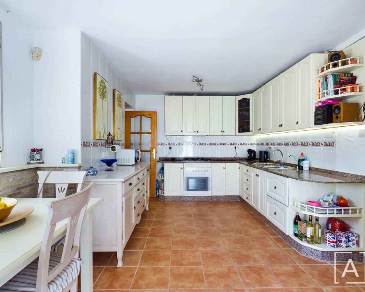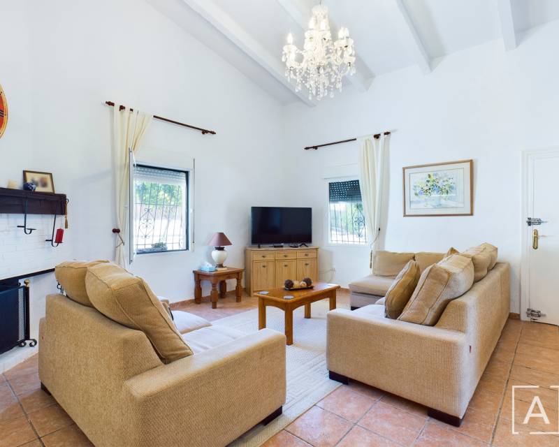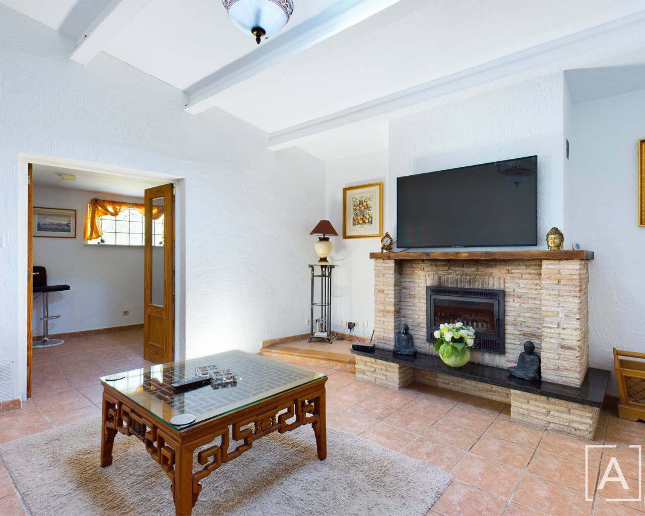 La Villa se abre directamente al generoso salón con chimenea. Un pasillo conduce a los 3 dormitorios y al baño. El dormitorio principal y el baño en suite se encuentran más adelante en el pasillo con un baño familiar enfrente. Aquí también hay acceso a la segunda sala de estar con chimenea, un lavadero y un dormitorio / estudio adicional. El acceso también está disponible a la cocina totalmente equipada. La cocina tiene acceso tanto a las salas de estar como a la zona de la piscina al aire libre. La piscina se encuentra en una gran terraza, en la parte trasera hay una barbacoa de ladrillo, un comedor y un bar. Además hay un útil WC al aire libre. Conectado a la parte principal de la Villa hay un gran garaje doble que haría una conversación ideal en el área de cocina / desayuno con vista a la piscina. La cocina actual podría convertirse en un vestíbulo de entrada. Consulte el plano del suelo.