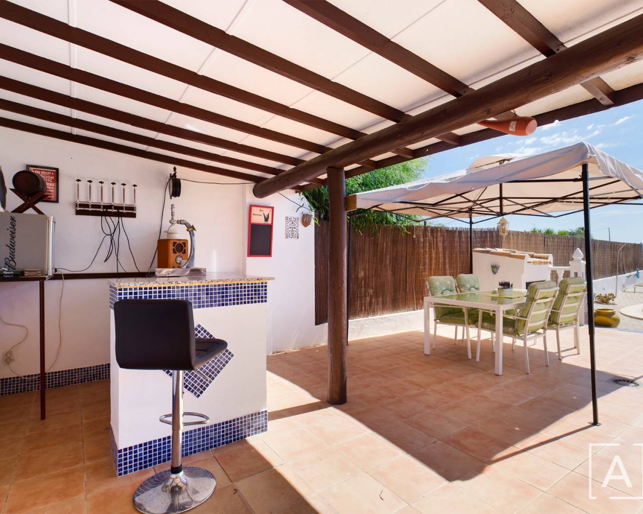 Esta propiedad también tiene la ventaja adicional de una parcela de tierra que los propietarios actuales han vallado. Actualmente se trata de un terreno no urbanizable, solo para cultivo, sin embargo se cree que esta parcela tenía previamente el permiso urbanístico otorgado para una propiedad de una sola planta, el terreno tiene su propia entrada y medidor eléctrico instalado. Cualquier comprador potencial necesitaría verificar esto ya que no se da ninguna garantía. El terreno también podría incorporarse al espacio exterior actual. Esta propiedad necesita ser vista para apreciar su ubicación, el espacio y la flexibilidad que ofrece la Villa y también la oportunidad de reformar partes de ella.