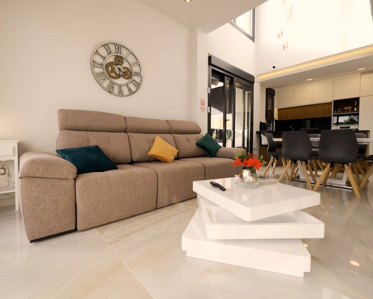 3 habitaciones, 4 baños Superficie total: 272 m2 Construida: 193 m2 Área terrestre: 277 m2 Solarium: 38 m2, sotano: 44 m2, balcon: 15 m2. Piscina privada: 30 m2. Nueva construcción. Villas está en la al lado del parque. Existen: garaje cerrado, aparcamiento, jardin, 2 terrazas, barbacoa, zona verde, sauna, área cercada, aire acondiciondo central, despensa, automatización del hogar, persianas eléctricas, lugar tranquilo, electrodomésticos, microondas, televisor, placa, lavavajillas, frigorifico, armario empotrado, cocina americana, completamente amueblado, internet de alta velocidad, fuente de alimentacion central, suministro central de agua, alarma de seguridad, puerta de entrada blindada, vigilancia. Cerca hay campo de golf, centro medico, supermercado, restaurante. . El área tiene buenas conexiones de transporte. Las magníficas condiciones climáticas y la infraestructura desarrollada hacen de Dehesa de Campoamor un lugar ideal para el descanso y la residencia.