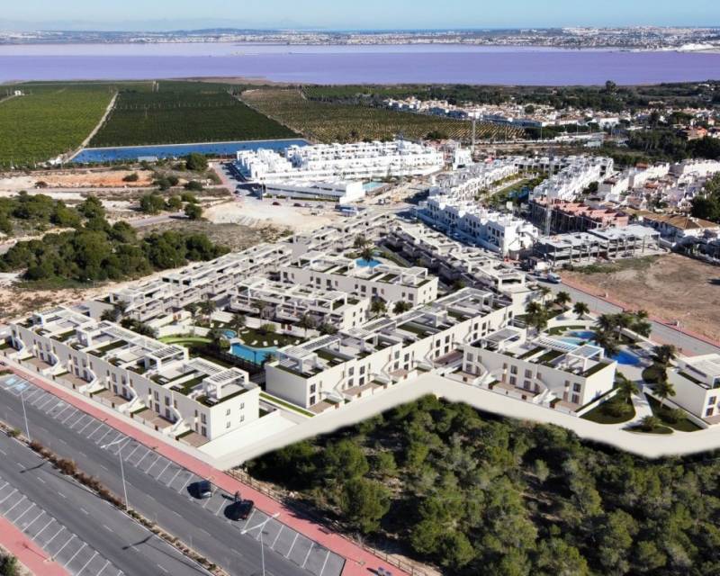 RESIDENCIAL DE OBRA NUEVA CONSTRUCCIÓN DE APARTAMENTOS BUNGALOW EN LOS BALCONES Residencial de nueva construcción en Los Balcones. El residencial consta de 136 apartamentos bungalow de lujo construidos con materiales de primera calidad. Cada uno de ellos tiene unas vistas mágicas a la Laguna Rosa de Torrevieja y al Mar Mediterráneo. Las viviendas tienen más de 131m2 distribuidos en un amplio salón-comedor con cocina americana, 2 amplios dormitorios y 2 baños completos. Puedes elegir entre bungalows de planta baja con sus 2 grandes terrazas privadas para disfrutar del clima de la Costa Blanca. O bungalows en primera planta de 178m2 con su solarium de 85m2 con vistas panorámicas a la Laguna Rosa y al Mar Mediterráneo El complejo ofrece idílicas zonas comunes ajardinadas con 3 zonas de piscina, zonas de jacuzzi, zona de fitness, pista de pádel, mini golf, zona infantil, punto de carga para vehículos eléctricos... ¡y mucho más! Sus instalaciones Premium y sus zonas verdes le permitirán disfrutar con su familia y amigos de los 320 días de sol que ofrece la Costa Blanca. Los Balcones se encuentra a las afueras de Torrevieja con todos los servicios accesibles, a sólo 5 minutos de la Playa de los Náufragos, de los supermercados, del colegio y del Centro Comercial La Zenia Boulevard, y a un minuto del Hospital Universitario de Torrevieja. Complejo situado a 40 minutos del aeropuerto de Alicante y a 1 hora del aeropuerto de Murcia - Corvera. 607