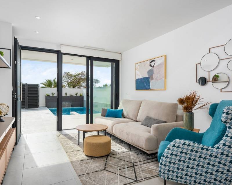 VILLAS DE NOUVELLE CONSTRUCTION À BENIJOFAR Nouvelle construction résidentielle de villas à Benijofar. Villas de style moderne sur des parcelles privées avec terrasse, parking et piscine privée. Elles sont composées d'un salon, d'une cuisine équipée, de 3 chambres à coucher, de 2 salles de bains et d'une double hauteur pour un coin lecture/bureau avec de belles vues. Soigneusement conçues avec des matériaux de haute qualité pour satisfaire les besoins des clients les plus exigeants. Son excellent emplacement fait de cette résidence un choix parfait pour les clients qui apprécient la situation géographique de leur maison dans un environnement calme sans pour autant sacrifier les équipements et le confort de la vie au c€ur de la ville. Benijofar est un joli village avec une église charmante et une place attrayante situé à l'intérieur des terres sur la Costa Blanca sud, près des stations touristiques de Guardamar del Segura et Torrevieja. Benijofar est également un lieu de séjour populaire pour les vacances d'été, car il est assez proche des stations côtières, mais assez calme pour pouvoir s'éloigner de tout. Il y a plusieurs terrains de golf à proximité, ainsi que des parcs aquatiques à Rojales et Torrevieja. Les plages les plus proches et les plus belles de Benijofar se trouvent à environ quinze minutes en voiture. Ce sont certaines des meilleures plages du sud de la Costa Blanca, à Guardamar del Segura et Torrevieja. Il y a également des services de bus réguliers de Benijofar à Guardamar del Segura et Torrevieja avec un accès facile aux plages. 20 minutes de route de l'aéroport d'Alicante avec des vols réguliers dans toute l'Europe.