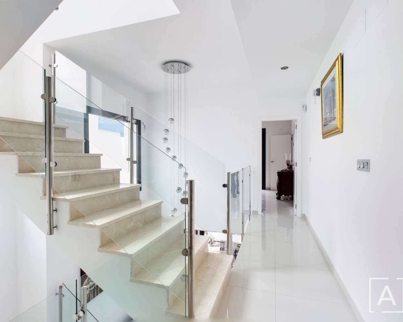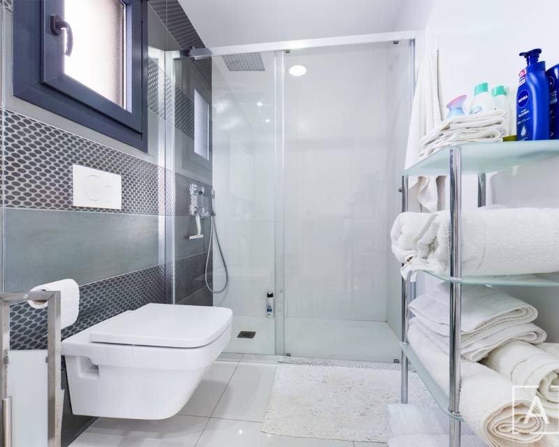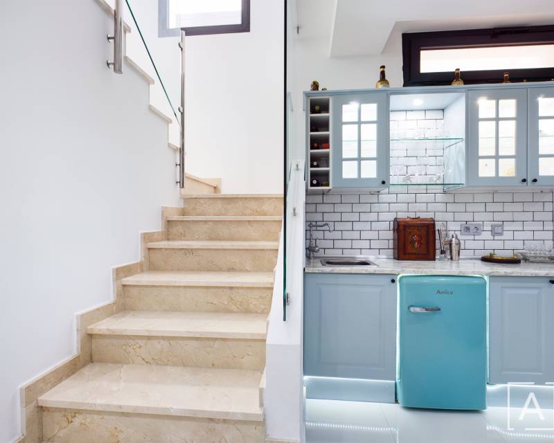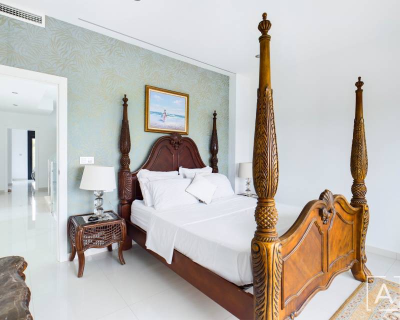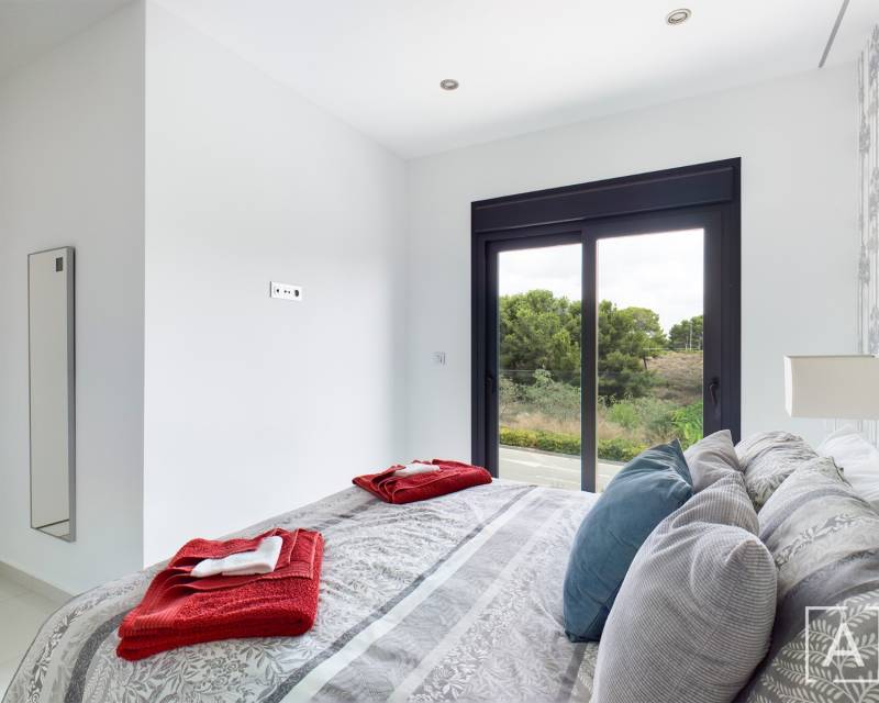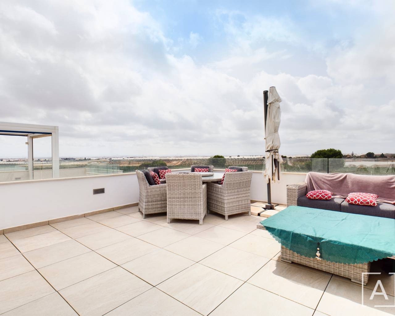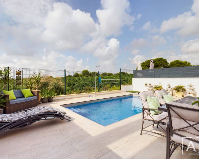 Nous sommes ravis de vous présenter cette magnifique villa de 4 chambres et 4 salles de bain située sur le parcours de golf Lo Romero à Pilar de la Horadada. Cette villa est meilleure que neuve avec un certain nombre de fonctionnalités, créant la villa de luxe ultime.Construite en 2019, elle se trouve au centre d'un terrain de 272m2. L'accès à l'avant se fait par une porte roulante, qui donne accès au parking pour 2 voitures, ou par une porte piétonne avec un interphone vidéo. Les deux portes sont à commande électronique. L'extérieur est principalement carrelé, créant une zone à faible entretien. Sur la terrasse arrière il y a une piscine, il y a aussi des stores électriques, une douche et des toilettes. En entrant dans la Villa, vous êtes immédiatement conscient de l'espace et de la lumière créés par le vitrage et la double hauteur de plafond. Sur la droite se trouve la cuisine entièrement équipée avec une variété d'électroménagers entremêlés dont 2 fours dont un avec un micro-ondes. , lave-vaisselle et céramique plaque. brûleur. Un îlot central sépare la cuisine de la salle à manger, qui bénéficie d'une vue sur la piscine et les citronniers derrière. La partie séjour profite d'un plafond à double hauteur. Il y a aussi une chambre double avec placards et une salle de bain avec douche. Tous les étages sont accessibles depuis l'ascenseur spécialement conçu qui a été installé pendant la construction et peut accueillir 4 personnes et est accessible en fauteuil roulant. l'escalier principal en verre et en marbre mène au sous-sol qui est actuellement configuré comme une "grotte pour hommes" avec une section de bar. Il y a une chambre supplémentaire ici qui a des armoires encastrées et une salle de bain avec douche. Le premier étage a une autre chambre, avec placards et douche en suite, le couloir qui offre une vue sur le salon, la cuisine mène à la chambre principale en suite. bénéficiant d'une vue sur la campagne et les chaînes de montagnes. La suite comprend un dressing et une salle de bains avec douche. Le solarium offre 360 degrés de la campagne environnante et est l'endroit idéal pour se détendre sur le canapé extérieur ou profiter d'un repas.