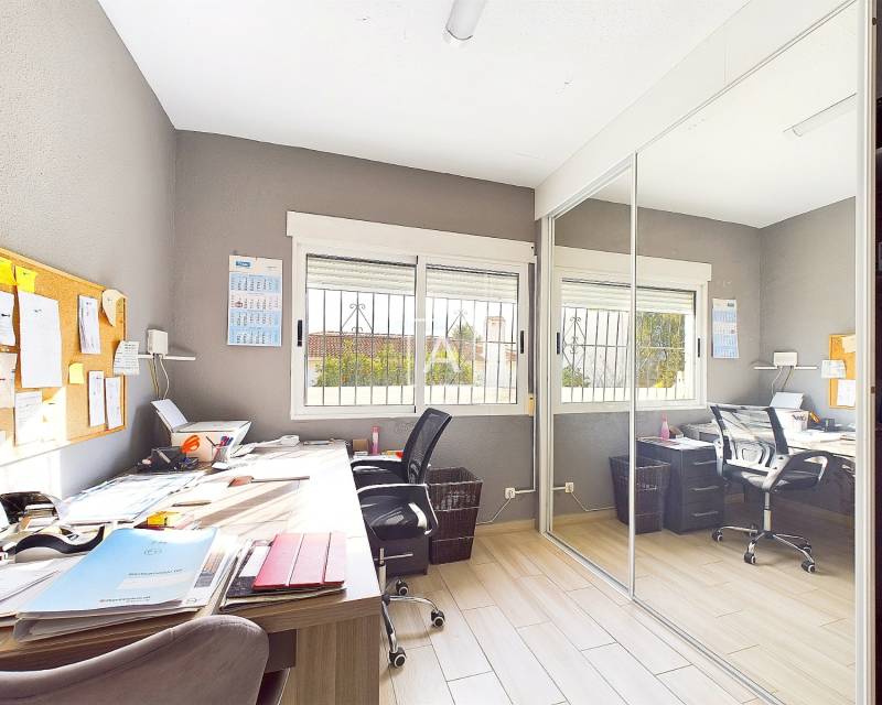 La suite principale est une retraite en soi, située à l'arrière de la villa et dotée d'armoires encastrées avec miroir et d'une salle de bains privative. Les deux autres chambres doubles sont accessibles depuis un couloir à côté de la salle à manger, toutes deux dotées d'armoires encastrées et l'une d'elles étant actuellement utilisée comme bureau. Le couloir mène directement à la piscine, offrant une transition parfaite entre la vie intérieure et extérieure. Toutes les chambres et le salon bénéficient de la climatisation. Les stores du salon et de la salle à manger sont électriques.