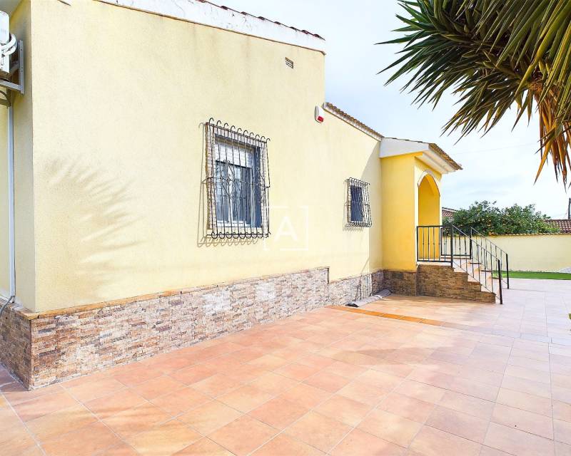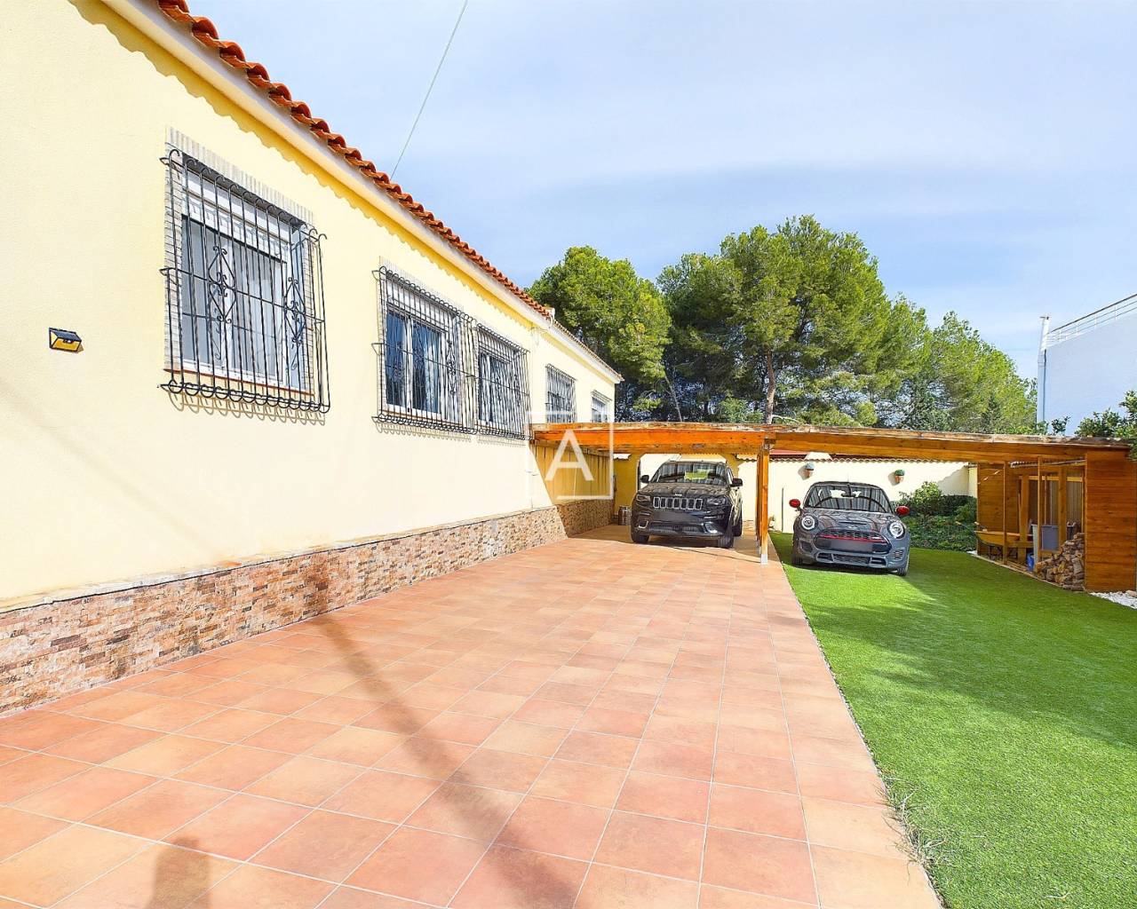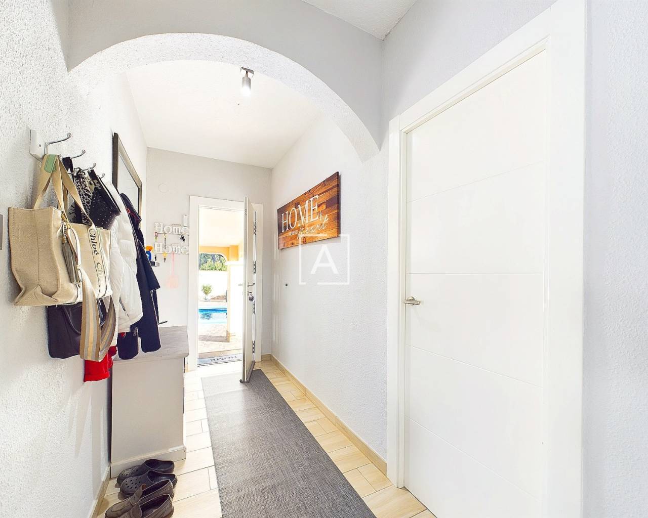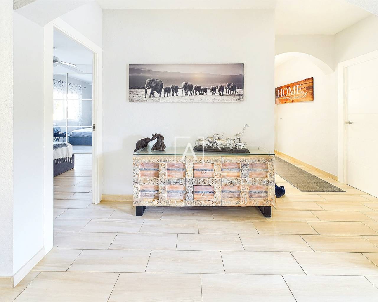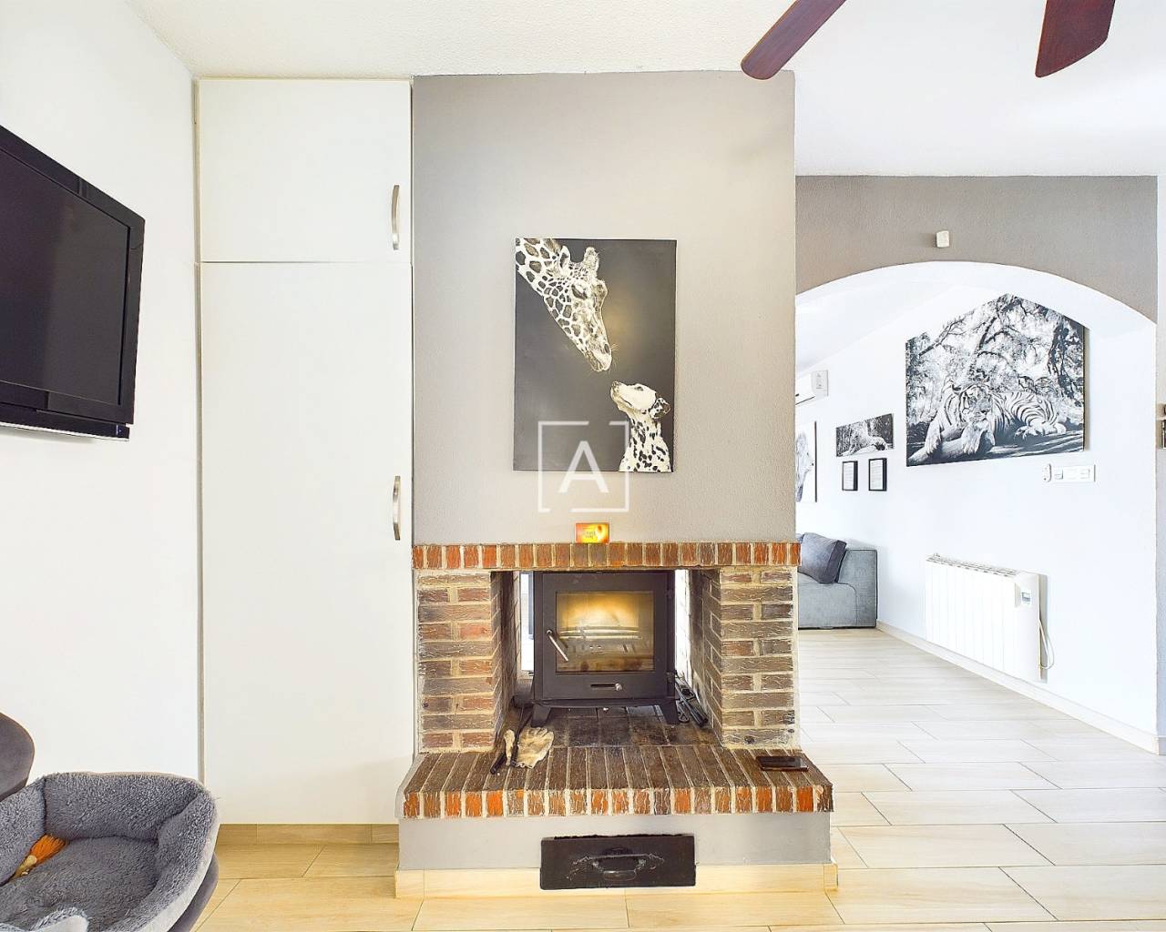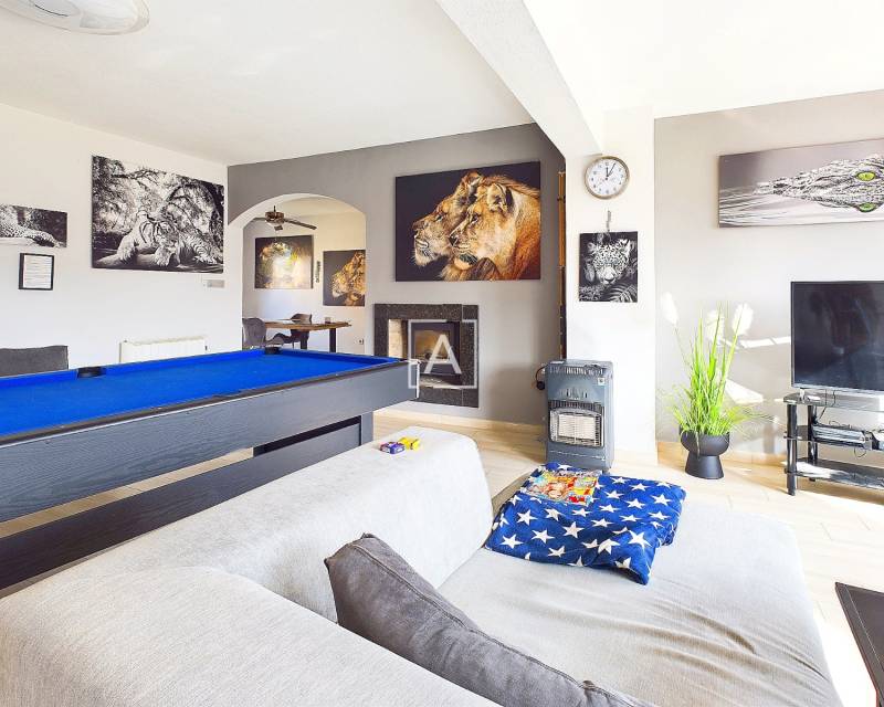 La villa a été soigneusement conçue dans un souci de praticité et de confort. Répartie sur un seul niveau, la maison est idéale pour les familles ou toute personne recherchant un accès facile. En entrant dans la propriété, vous êtes accueilli par un hall d'entrée accueillant qui mène directement à un salon spacieux et lumineux. L'espace de vie est agrémenté d'une cheminée double face et de la climatisation, offrant un confort toute l'année.