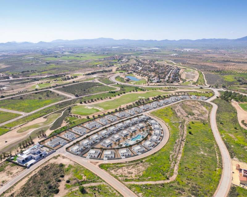 Villas exclusives en première ligne de golf à Hacienda del Álamo, Costa Cálida Villas modernes dans l'un des meilleurs complexes de golf d'Espagne Découvrez une opportunité unique d'acquérir une villa de luxe neuve en première ligne du complexe de golf Hacienda del Álamo, situé entre les villes historiques de Carthagène et Murcie, au cœur de la Costa Cálida. Ces villas contemporaines sont conçues pour offrir confort, intimité et élégance, dans un cadre exceptionnel dédié au golf et aux loisirs. Chaque propriété offre un agencement spacieux avec 3 chambres, 2 salles de bains et des toilettes pour invités, sur un ou deux niveaux, selon le modèle choisi. Avec des terrains généreux à partir de 700 mètres carrés et une surface construite de 146 mètres carrés, ces maisons offrent un espace généreux pour la vie à l'intérieur comme à l'extérieur. Caractéristiques et finitions de haute qualité Ces villas en première ligne sont équipées de commodités modernes pour assurer un maximum de confort et de style, notamment : Piscine privée et jardin paysager avec système d'irrigation goutte à goutte Cuisine entièrement équipée avec armoires et appareils électroménagers inclus Climatisation centralisée dans toute la propriété Salles de bains avec meubles, miroirs et parois de douche Fenêtres en aluminium à rupture de pont thermique et double vitrage Accès à une grande piscine communautaire avec gazon naturel et aire de jeux pour enfants Une vie luxueuse dans le complexe de golf Hacienda del Álamo Hacienda del Álamo est réputé pour être l'un des meilleurs complexes de golf d'Espagne, offrant à ses résidents un style de vie alliant détente, sport et commodité. Parcours de golf de championnat 18 trous et académie Installations sportives comprenant tennis, paddle, salle de sport et cours de fitness Club-house principal avec vue panoramique, restaurant servant une cuisine méditerranéenne et terrasses ensoleillées Hôtel 4 étoiles et spa pour la détente et le bien-être Espaces adaptés aux familles, avec aires de jeux pour enfants, piscines et pistes cyclables Village traditionnel espagnol avec boutiques, cafés et nouveaux restaurants à venir Emplacement stratégique avec d'excellentes connexions Aéroport de Corvera (Murcie) : 18 km (environ 15 minutes) Carthagène : 36 km Centre-ville de Murcie : 40 km Plages de Mar Menor : 28 km Centres commerciaux (Dos Mares, Espacio Mediterráneo) : à moins de 30 km La maison de vos rêves au bord du golf vous attend Que vous recherchiez une résidence permanente, une maison de vacances ou un investissement intelligent sur la Costa Cálida, ces villas en première ligne de golf à Hacienda del Álamo sont faites pour vous. Contactez-nous dès aujourd'hui pour en savoir plus ou pour organiser une visite personnalisée.