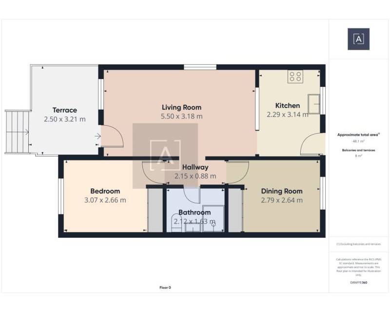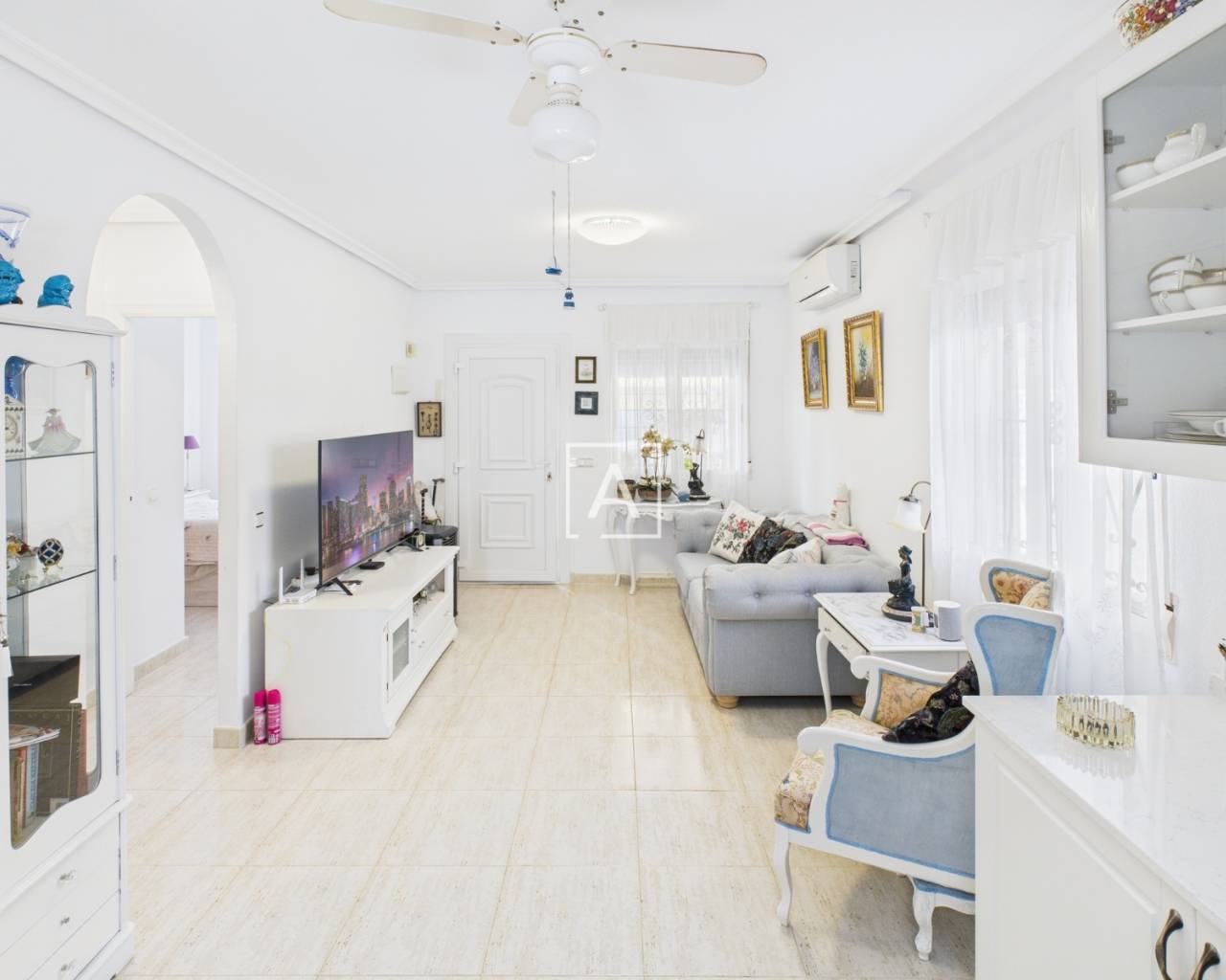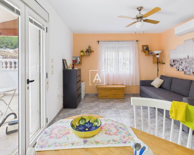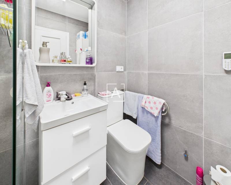 On accède à la propriété par un porche spacieux et fermé, équipé de stores, qui mène à un salon lumineux et à une cuisine américaine. Les deux chambres, accessibles depuis le salon, disposent chacune d'une armoire encastrée. La salle de bains moderne a été récemment rénovée et comprend une douche à l'italienne.