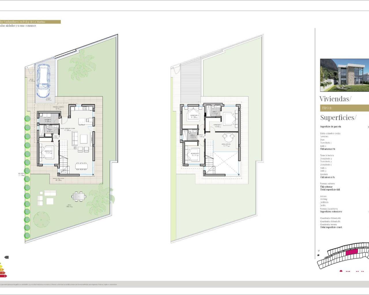 Villas neuves à Polop, Alicante Une vie moderne entourée par la nature Découvrez ce lotissement exclusif de villas neuves à Polop, un charmant village de l'arrière-pays situé dans la province d'Alicante. À seulement 10 km des plages animées et de la vie nocturne de Benidorm et à proximité de la ville pittoresque d'Altea, ces maisons offrent une combinaison imbattable de confort moderne et de beauté naturelle. Un projet résidentiel adapté à vos besoins Le projet se compose de 65 villas indépendantes disponibles dans différents agencements pour répondre à vos besoins et à votre budget. Vous avez le choix entre des maisons de 3 ou 4 chambres à coucher, avec des options de conception à un ou deux étages. De nombreuses propriétés sont conçues sur un seul niveau, offrant une meilleure accessibilité et une expérience de vie confortable sans avoir besoin d'escaliers. Chaque maison est conçue avec soin et dispose de terrasses spacieuses, de jardins privés et d'espaces intérieurs/extérieurs où vous pourrez profiter du climat méditerranéen. Des piscines privées sont également disponibles en option pour ajouter une touche de luxe supplémentaire à votre nouvelle maison. Une situation privilégiée avec un accès facile aux principales destinations Situé dans un cadre naturel paisible, le projet est idéal pour ceux qui recherchent la tranquillité sans sacrifier la commodité. Les environs permettent d'accéder aux principaux centres d'intérêt : Plages de Benidorm : 10 km (15 minutes en voiture) Playa del Albir : 12 km (20 minutes), réputée pour ses eaux pures et sa promenade pittoresque. Aéroport d'Alicante : 60 km (45 minutes) Terrain de golf de Villaitana : 12 km (15 minutes) Centre commercial La Marina : 10 km (15 minutes) Des équipements haut de gamme pour un confort moderne Chaque villa est équipée de finitions de haute qualité et de systèmes de pointe, garantissant un maximum de confort, de sécurité et de durabilité : Fenêtres en PVC à double vitrage avec isolation thermique et solaire Portes d'entrée renforcées pour une sécurité accrue Cuisines entièrement équipées avec plaque de cuisson à induction, four, hotte aspirante et évier en acier inoxydable. Salles de bains modernes avec lavabos et robinetterie en porcelaine de style Climatisation préinstallée avec pompe à chaleur Eau chaude fournie par des systèmes aérothermiques pour une meilleure efficacité énergétique Communauté fermée avec caméras de surveillance Polop : L'alliance parfaite de l'histoire et de la nature Polop de la Marina est une ville historique entourée de paysages époustouflants. Le charme de sa vieille ville, la maison-musée Gabriel Miró et les nombreux sentiers de randonnée en font une destination recherchée par les amateurs de nature et d'histoire. Vivre la côte et la campagne Adoptez un nouveau style de vie dans ces maisons soigneusement conçues, où le confort rencontre la nature. Profitez des vues panoramiques grâce aux grandes fenêtres qui encadrent le paysage environnant, créant ainsi un équilibre parfait entre l'intérieur et l'extérieur. Ne manquez pas l'occasion de devenir propriétaire de la maison de vos rêves à Polop ! Contactez-nous dès aujourd'hui pour plus d'informations et pour planifier une visite. 607