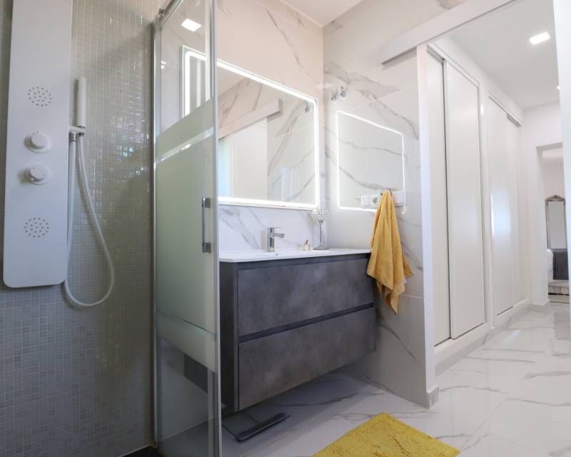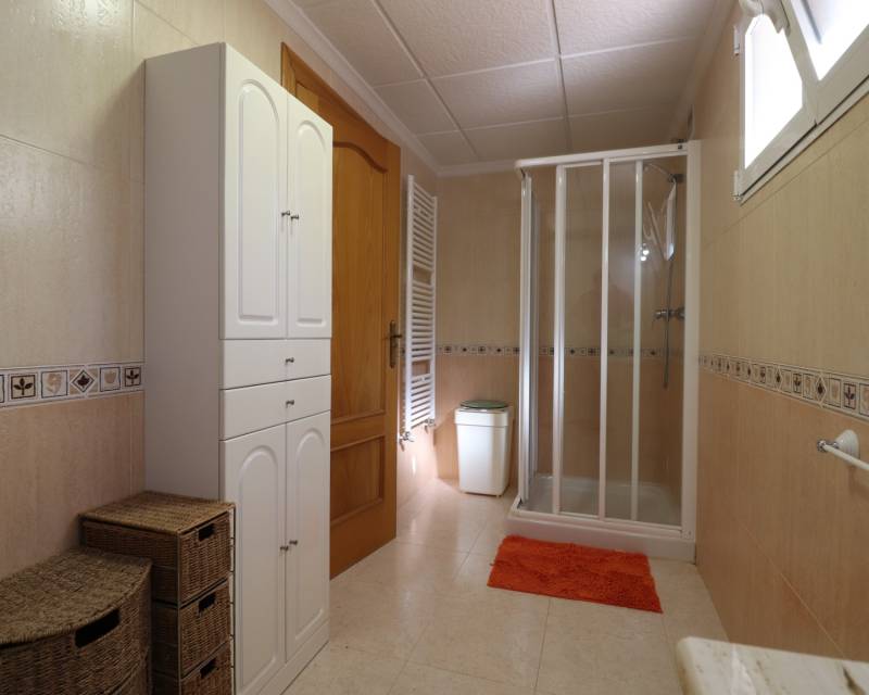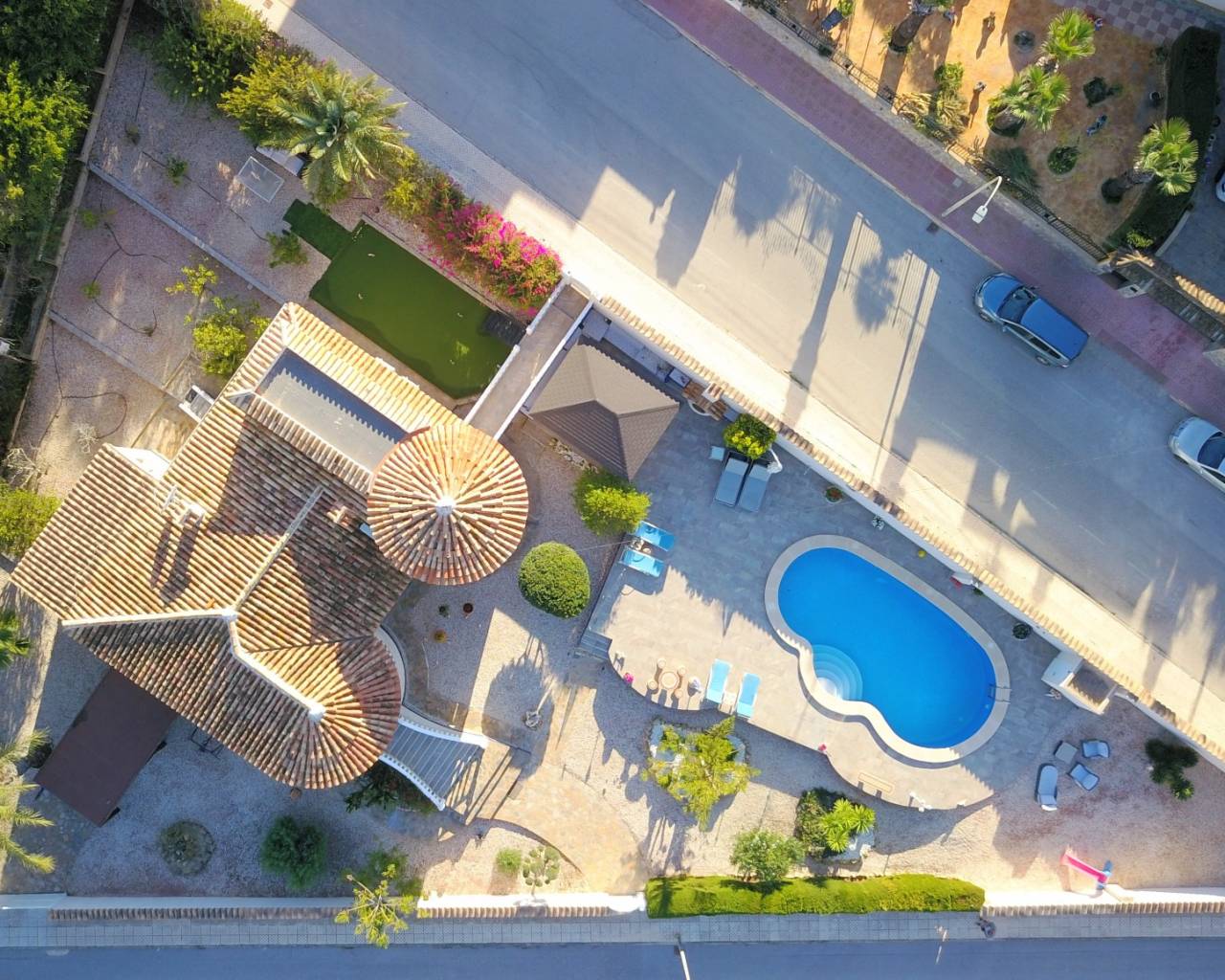 Deze opmerkelijke, op het westen gelegen, hoekvilla met vijf slaapkamers in Lomas de La Juliana ligt op een prominente locatie aan de Costa Blanca Zuid, onder het gebied van Almoradi, maar dichter bij en gunstig gelegen tussen het dorp Algorfa en het prestigieuze La Finca Golf, Hotel & Spa Resort. Met een tennisclub net bovenaan de weg en voorzieningen van het belangrijkste merk op slechts een paar minuten rijden, liggen de stranden met blauwe vlag van Guardamar del Segura ook op slechts 15 minuten afstand! Dit ongelooflijke pand beslaat een indrukwekkende bebouwde oppervlakte van 375 m² op een prachtig perceel van 1.149 m² en biedt een panoramisch uitzicht op het platteland, citrusboomgaarden, bergen en zonsondergangen. De hoofdvilla is volledig geüpdatet en gemoderniseerd, met behoud van karakter en charme, en omvat drie slaapkamers en drie badkamers. Bij binnenkomst leidt de hal naar een open, volledig ingerichte keuken met een ontbijtbar, een ruime woonkamer voor het hele gezin met een gezellige houtkachel en directe toegang tot het grote overdekte terras aan de voorzijde, perfect om te genieten van het adembenemende uitzicht. Er is ook een eetkamer met toegang tot de achtertuin, een doucheruimte en twee slaapkamers op de begane grond, waarvan één met een eigen badkamer en douche. De hoofdslaapkamer op de bovenverdieping heeft een inloopkast, een kaptafel en een eigen badkamer met douche. De aparte annex, gelegen in de onderbouw, biedt twee extra slaapkamers en een badkamer, toegankelijk via de dubbele garage of onafhankelijk van de achterkant. Deze ruimte omvat een aparte keuken en eetkamer, een grote slaapkamer met een woonkamer en kantoor, plus een eigen douche. De garage wordt momenteel gebruikt als een speelkamer met een pooltafel, pingpongtafel, bijkeuken en een aangrenzende berging. Buiten beschikt de grind- en betegelde tuin over een bijgewerkt privézwembad, een barbecueplek, een kleine putting green en voldoende ruimte om buiten te eten en te entertainen. Extra hoogtepunten zijn een carport, off-road parkeren, centrale verwarming op olie, overal airconditioning, plafondventilatoren, inbouwkasten in de hoofdvilla en dubbele ingangen vanaf verschillende wegen. Dit is een buitengewone kans om een aanzienlijk en veelzijdig pand te bezitten met een fantastisch uitzicht op een benijdenswaardige locatie!
