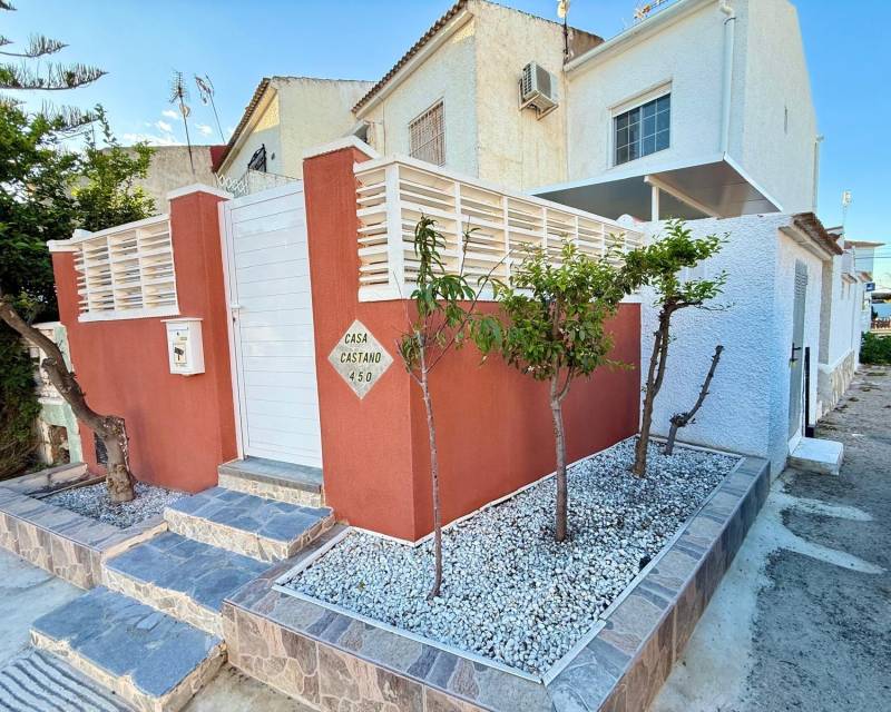 We presenteren dit charmante bungalow op de begane grond, gelegen in het rustige gebied La Siesta € El Salado € Torreta, ideaal voor wie dicht bij de zee wil wonen in een rustige omgeving.~~Het pand biedt 47€m2 bebouwde oppervlakte en 38€m2 gebruiksoppervlakte, efficiënt verdeeld over twee ruime tweepersoonsslaapkamers en een gedeeltelijk gerenoveerde badkamer.~~Dankzij de noordoostelijke oriëntatie kunt u 's ochtends van de zon genieten, terwijl de privétuin van 26€m2 perfect is om buiten te ontspannen, omgeven door prachtige fruitbomen zoals laurier, pruim, nectarine, citroen en sinaasappel. Het pand beschikt ook over een berging, wat extra opslagruimte biedt.~~Op slechts 5 minuten lopen bevindt zich het Plaza Lira-park met een openbaar zwembad, ideaal om van het mooie weer en buitenactiviteiten te genieten.~~Gelegen op ongeveer 3 km van de zee, met gemakkelijke toegang tot winkelcentra, supermarkten en scholen, wat het een uitstekende optie maakt als permanent verblijf en als vakantie-investering.~~Mis deze kans niet! Neem contact met ons op om te ontdekken hoe dit spannende appartement uw nieuwe thuis kan worden.~~Denkt u eraan uw woning te verkopen en dit droomappartement aan te schaffen€ Ons bureau biedt een gratis waardebepaling, met meer dan 20 jaar ervaring en de meest actuele verkoopgegevens. Wij helpen u een snelle en voordelige verkoop te realiseren, zodat u kunt beginnen te genieten van het leven aan zee dat u altijd al wilde.~~Neem nu contact met ons op en zet de eerste stap naar uw nieuwe leven aan de Costa Blanca!