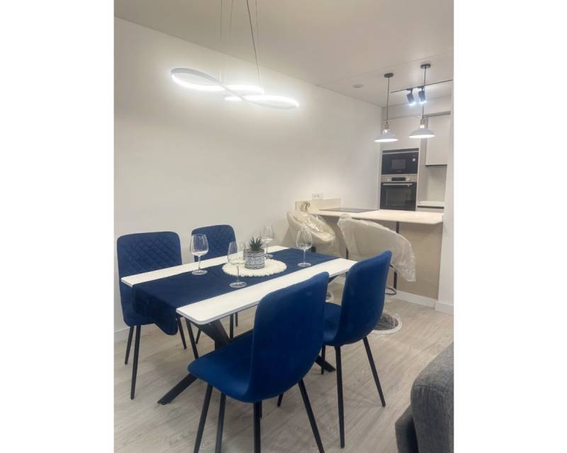 Dit volledig gerenoveerde appartement ligt op slechts 50 meter van Playa del Acequión en biedt modern comfort op een uitstekende locatie in Torrevieja. De woning is grondig gerenoveerd met nieuwe ramen en deuren, een volledig vernieuwde elektrische installatie met verhoogde capaciteit en een compleet vernieuwd water- en rioleringssysteem. Daarnaast beschikt het appartement over gekanaliseerde airconditioning, een 100L elektrische boiler met WiFi-toegang en een moderne keuken met geïntegreerde Bosch-apparatuur. Binnen vindt u een lichte woon- en eetkamer, twee slaapkamers en twee moderne badkamers, allemaal in uitstekende staat met nieuwe meubels. Het appartement beschikt over een ruim privéterras, ideaal om te genieten van het mediterrane klimaat. Het gebouw heeft een lift en ligt op loopafstand van het strand, restaurants, supermarkten en de boulevard van Torrevieja. Een garageplaats in hetzelfde gebouw kan apart worden gekocht. Een uitstekende woning voor vakantiegebruik, permanente bewoning of verhuurinvestering aan de Costa Blanca.