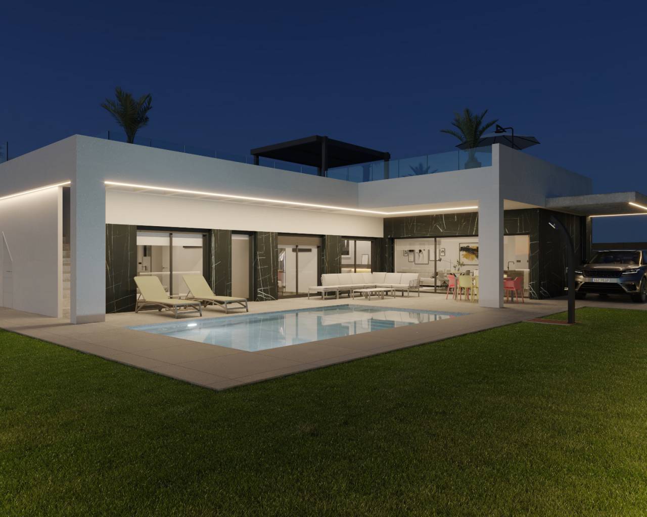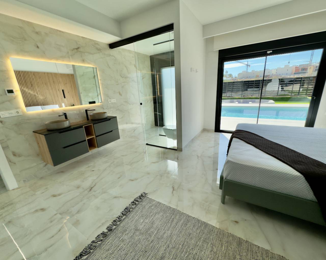 Oasis Villas is located in the urbanization La Finca Golf Resort, belonging to the town of Algorfa, south part of Alicante and near Torrevieja and Orihuela Costa. It is a perfect urbanization, surrounded by nature, where they are going to find a great offer of leisure and sports services, such as its golf course, which has 18 holes, considered one of the best ones in the area. Its proximity to the beaches also makes our Villas be at a perfect placement to enjoy both the mountain and sea. Our new villas will form a complex composed of 20 independent villas. We are offering the option of three bedrooms and two bathrooms or four bedrooms and three bathrooms providing the best exterior and interior design. A property located within a large independent plot of approximately 500m2, which also includes a private pool, solarium, parking and garden areas.