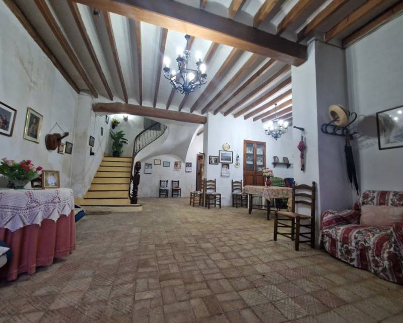 A large farmhouse for sale located in beautiful Relleu, Hoyas del Río, 1.5 km from the Relleu municipality. , located in a privileged location. This magnificent property offers over 600 m² build and a 20,000 m² plot. All structures and land are registered. The property is fully fenced. The house offers 2 dining rooms, 2 kitchens, 7 bedrooms, 2 bathrooms, several attics, several storage rooms. Everything is functional and in original state. It benefits from stone walls and high ceilings with wooden beams. It has a closed garage and a workshop. The plot has electricity, drinking water and well water, also internet. There are several olive and almond trees. Asphalt road practically to property entrance. You can make the pool without a complication. Easily open a rural complex for tourist use.