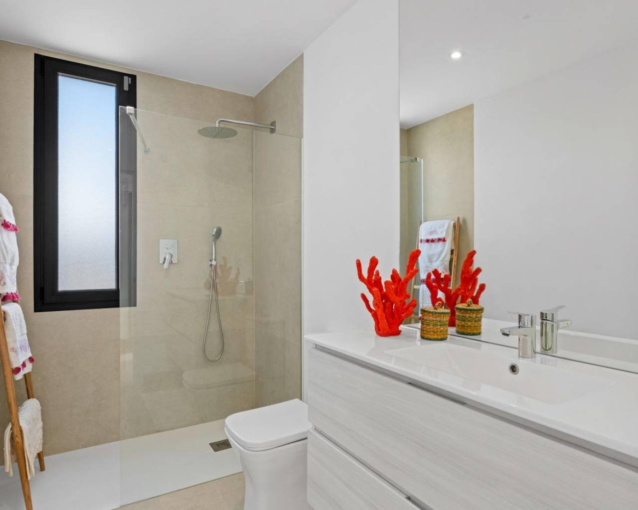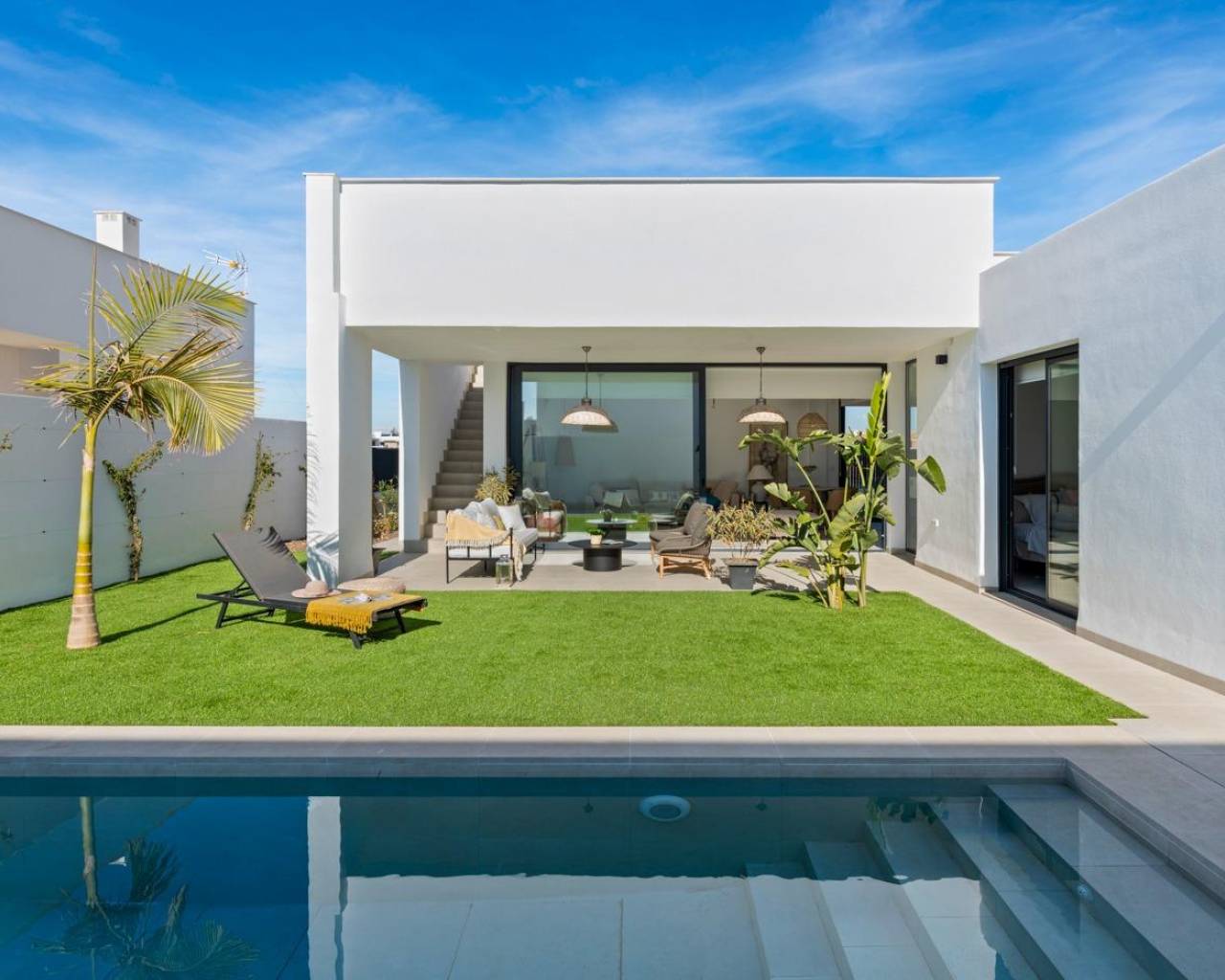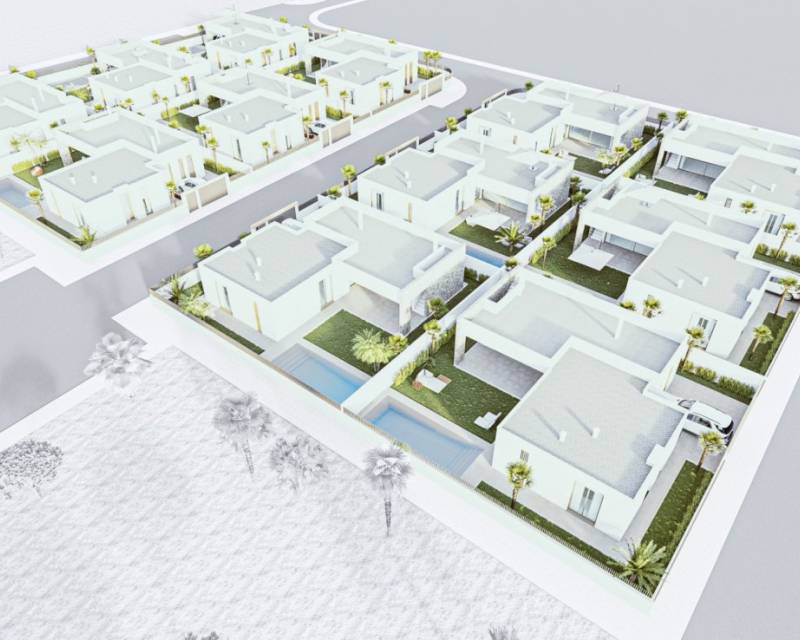 NEW BUILD VILLAS IN MAR DE CRISTAL New Build one level villa with 3 bedrooms, 2 bathrooms and private solarium at 500 meters from the Mar De Cristal beaches. Villas has modern open plan kitchen with the living room, where high sliding windows has access to the garden with private swimming pool and parking space. Mar De Cristal is a coastal town in the middle of beautiful nature and nature parks of which you find photo’s added. This is one of the most beautiful places in Spain and the whole world. In Mar De Cristal you will find some nice restaurants and a supermarket. The nice restaurants of Los Belones are only 2 km’s away, The 36 km beaches of La Manga are a 5 minutes drive. Magical Cabo De Palos and Portman is only a 5 minutes drive. The big shopping centre of Cartagena is less than a 10 minutes drive. Murcia Corvera airport is 30 minutes away, Alicante airport 55 minutes.