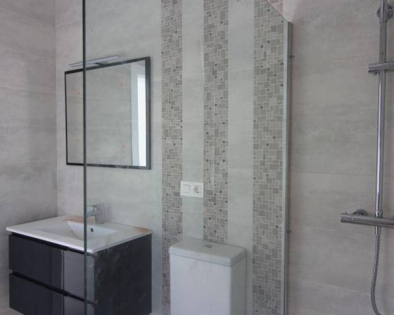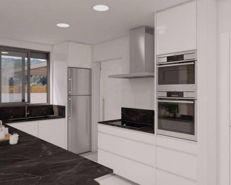 MODERN VILLA BETWEEN SEA AND MOUNTAINS Fantastic new built Villa built on a plot of 400m2 in Aspe. The villa has a constructed area of 140.17m2, on one floor, with a porch of 19.20m2, a living-dining-kitchen of 41.50m2, 3 bedrooms, 2 bathrooms, a gallery. Included in the price: Appliances: hob, oven, extractor, dishwasher, fridge and washing machine. Air conditioning with heat pump, installation + machine Bathrooms with bathroom furniture with mirror, shower enclosure and taps Kitchen with white furniture and national granite Interior LED throughout the house and on the porch Double glazing, interior doors and white fitted wardrobes. Pavement around the house and swimming pool and car parking area, gravel, lawns and plants. Vehicle door automatic door and pedestrian door. Pool If you are looking for a quiet environment, close to typical Spanish villages, surrounded by mountains and about 30 minutes from the sea, this is your home!