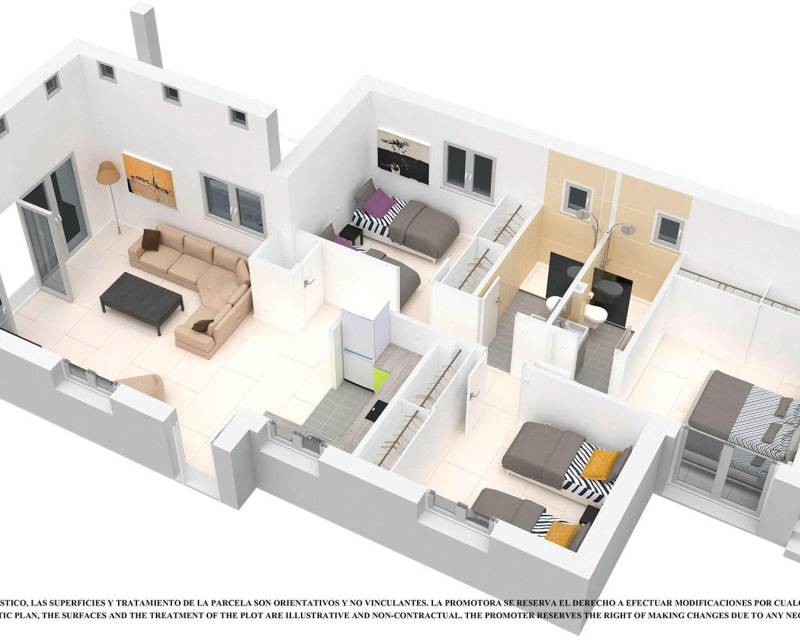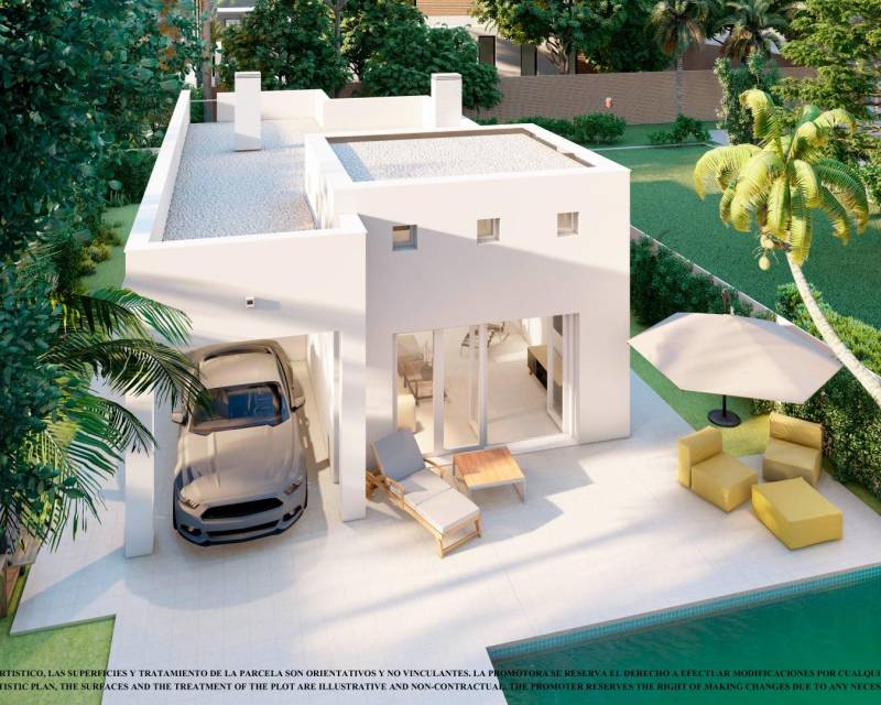 NEW BUILD VILLAS IN LOS ALCAZARES New Build detached villa build on the generous plot of 350m2 in Los Alcazares . Villa with 3 bedrooms and 2 bathrooms, open plan kitchen with the lounge area, fitted wardrobes, solarium, private garden with off road parking space and space for a swimming pool. An options for a private pool at an extra cost. Spacious living room has large sliding doors to a terrace. Ample terraces at the front and rear ensure that owners can sunbathe throughout the day. This villas have modern fitted kitchens with a choice of colours for kitchen units and wall tiles in both kitchens and bathrooms and also floors and terraces. Residential of villas located 1 km from the beach and the town of Los Alcázares, where you can practice various water sports, surrounded by several golf courses. City of Cartagena less than 15 minutes by car and 30 minutes from Murcia Corvera airport.