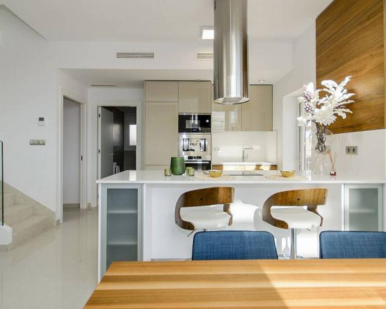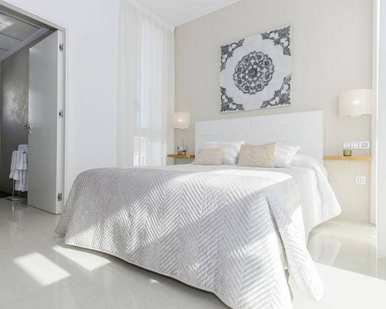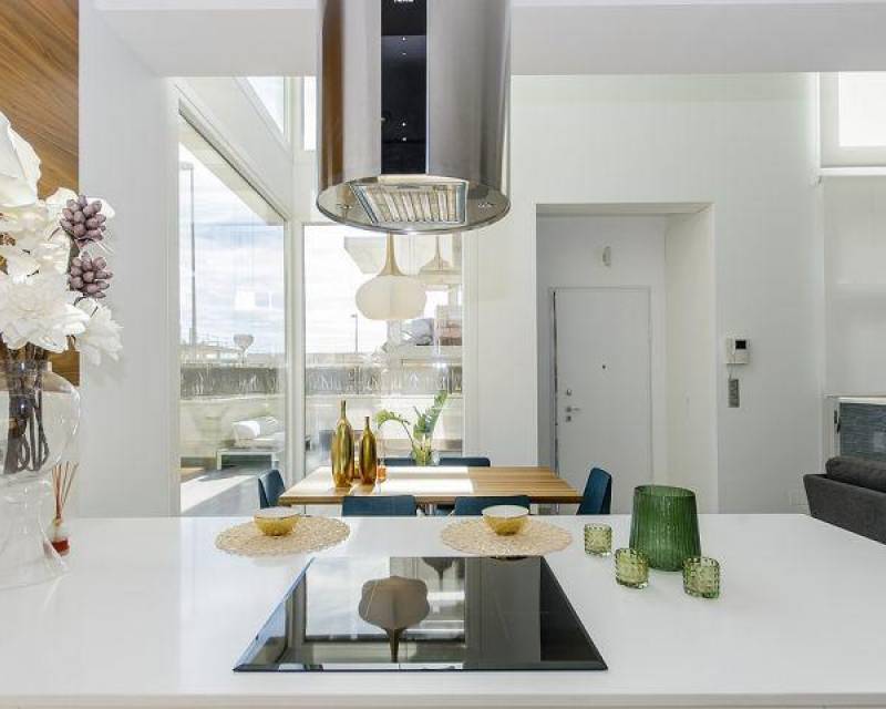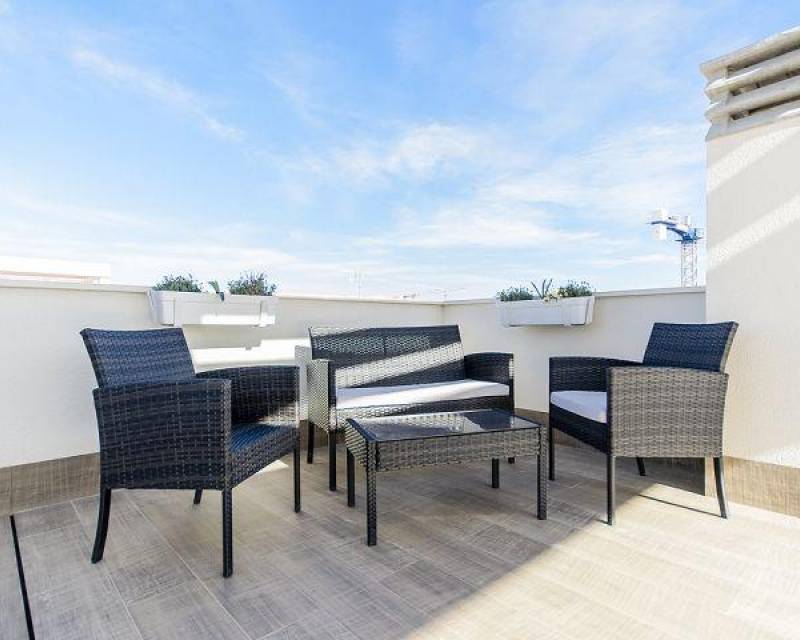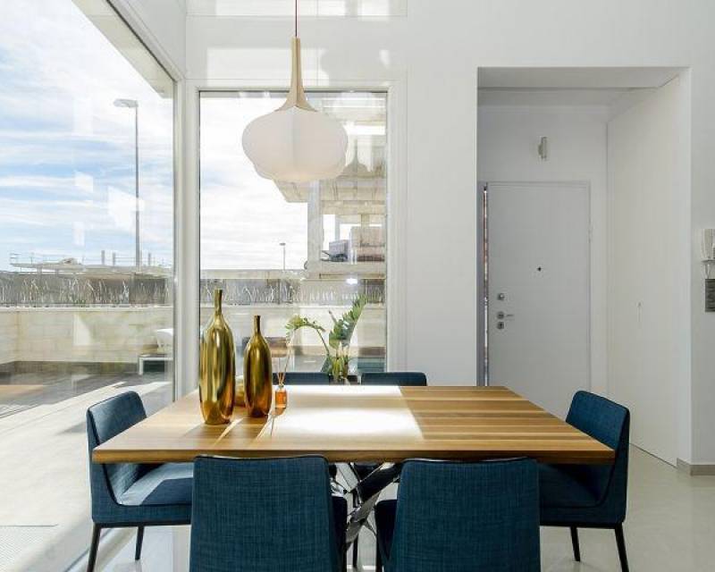 DESIGN VILLA WITH ALL THE LUXURIES Detached villa with 3 bedrooms, 3 bathrooms, with a SOUTH orientation. It has a 12 m2 porch / pergola on the ground floor and a 45 m2 solarium on the roof. It has a terrace, private garden and access door to the car. It is designed with high quality materials using the most careful technology and providing the greatest comfort 6.5x3.3 swimming pool with colored lights, designer tile, brick staircase, 1.20 waterfall and bench to sit under the waterfall. This residence is located in one of the most beautiful and quiet areas between Ciudad Quesada and Pueblo Bravo, near the Natural Park of Las Lagunas de La Mata and Torrevieja and very close to the beaches of Guardamar and the La Marquesa golf course.