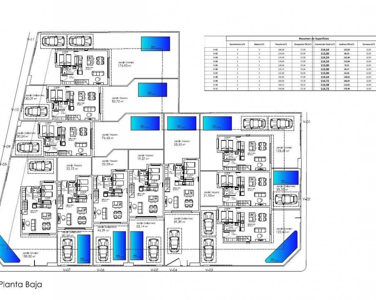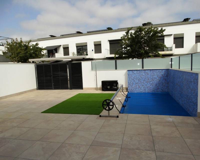 NEW BUILD TOWNHOUSES IN SANTIAGO DE LA RIBERA New Build development of 11 townhouses in Santiago de la Ribera, 100 metres from the beach! Beautiful properties with 3 bedrooms and 3 bathrooms, open plan kitchen with living room, fitted wardrobes, terrace, solarium, private garden with swimming pool and parking space. Just 5 minutes walk along the promenade, next to the yacht club, will take you to the centre of Santiago de la Ribera, with all the services at your fingertips, street market, bars, restaurants, ice cream parlours, shops, water activities and everything you need to enjoy the Mediterranean lifestyle in the Mar Menor. Santiago has a modern feel, although it still maintains its ‘fishing village’ atmosphere. It has a very beautiful promenade, which is lined by majestic palm trees and 2 kilometres of wonderful sandy beaches. From here you can take a boat trip out across the calm waters of the Mar Menor, to the La Manga Strip on the opposite side. The main shopping area is really in the town of San Javier, but there are some some shops in the narrow streets to browse, try visiting on a Wednesday morning when there is a large street market. The villas are walking distance to shops, bars, restaurants, Dos Mares shopping centre and the fantastic beaches of the Mar Menor and 20 minutes to the popular Zenia Boulevard - everything is within easy reach! Just 30 minutes from Cartagena city and the new International Murcia airport.