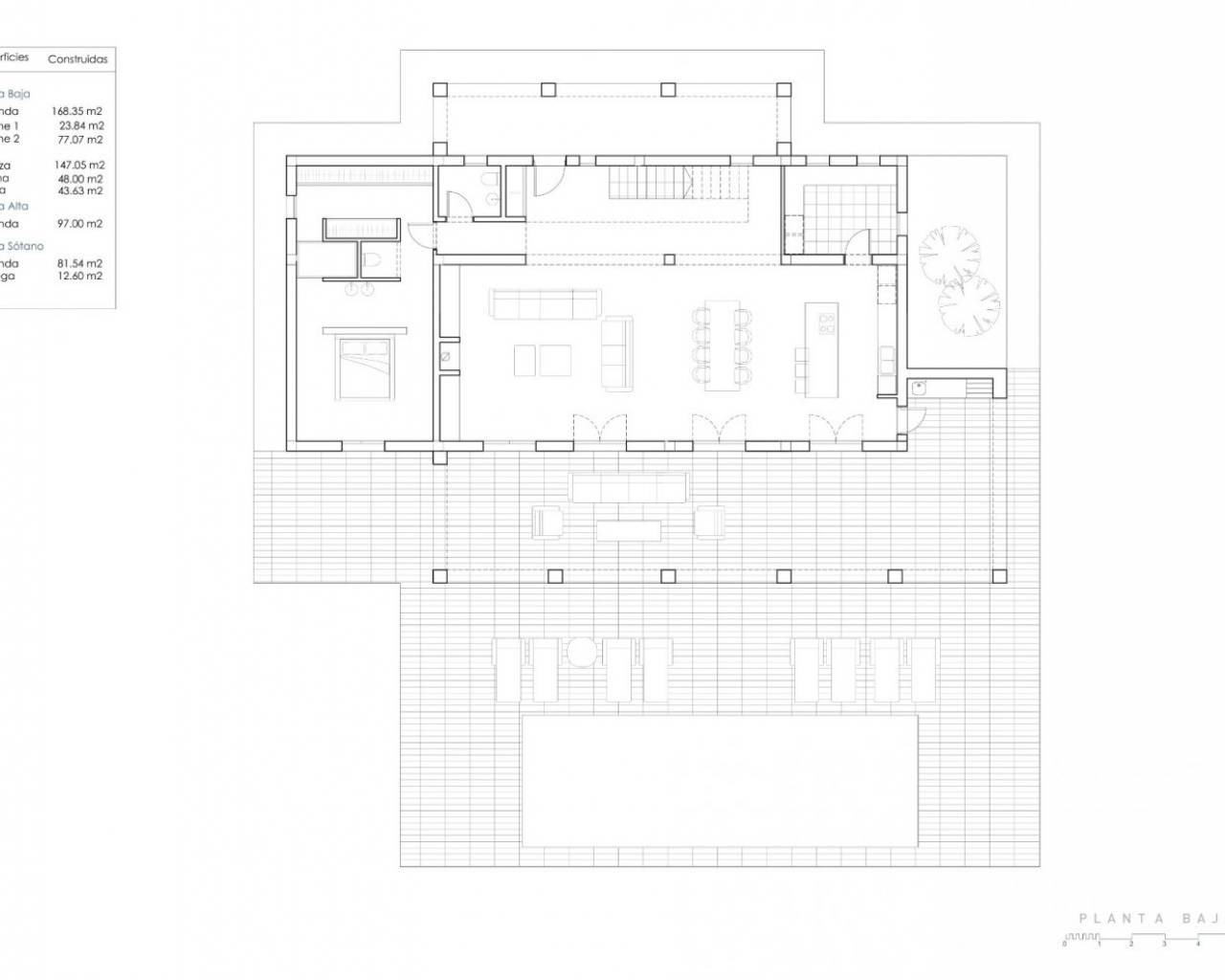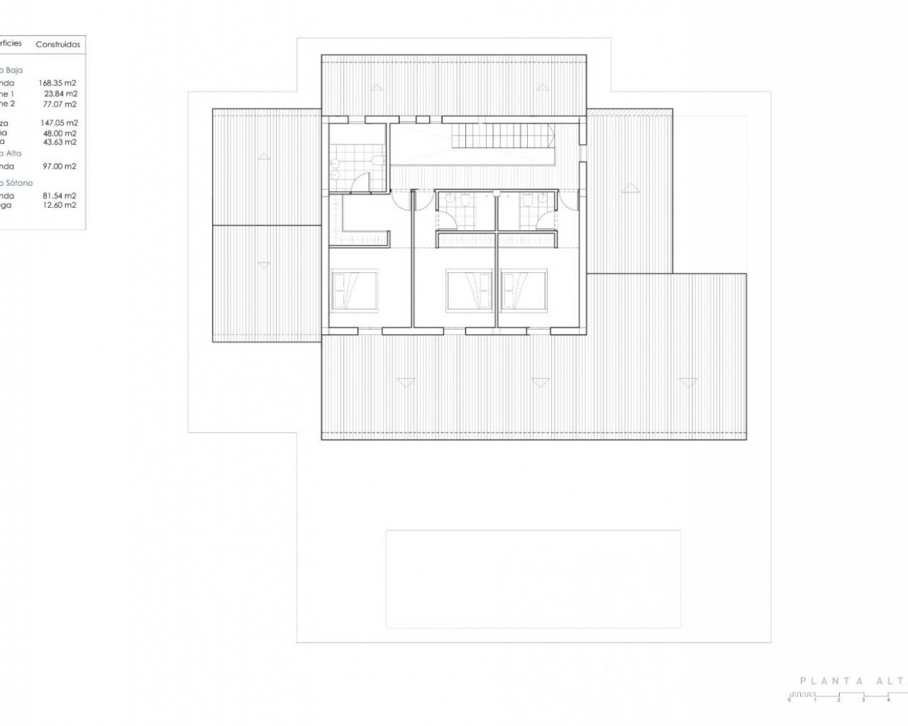 Newly built villa in Teulada with mountain views On the ground floor we find a large living-dining area and open plan kitchen, master bedroom with walking wardrobe and bathroom, front terrace with access to the pool. On the first floor is 3 bedrooms with fitted wardrobes, 3 bathrooms en suite. As well here you have basement of 81m2 with wine celler. Villa will be build using high quality materials. The kitchen will be chosen by the client, kitchen cabinets, worktop and appliances. Air conditioning with climate control system (condense) in the living rooms and bedrooms. Mitsubishi brand. The swimming pool will be built with an outdoor shower (hot/cold water connection). Automatic entrance gate for the cars with remote control and automatic pedestrian door. Garden to be chosen by the client. Moraira is a small town with with good restaurants, bars and plenty of supermarkets around. There is a very pleasant beach right next to town that is great for families. The seafront offers tremendous views of Penon Ifach across the bay in Calpe. The coast road getting there is well worth doing with some spectacular views. Moraira situated about 1 hour 15 minutes North up the A7 from Alicante airport its fairly easy to get to. It's about the same distance or a little less South from Valencia airport.