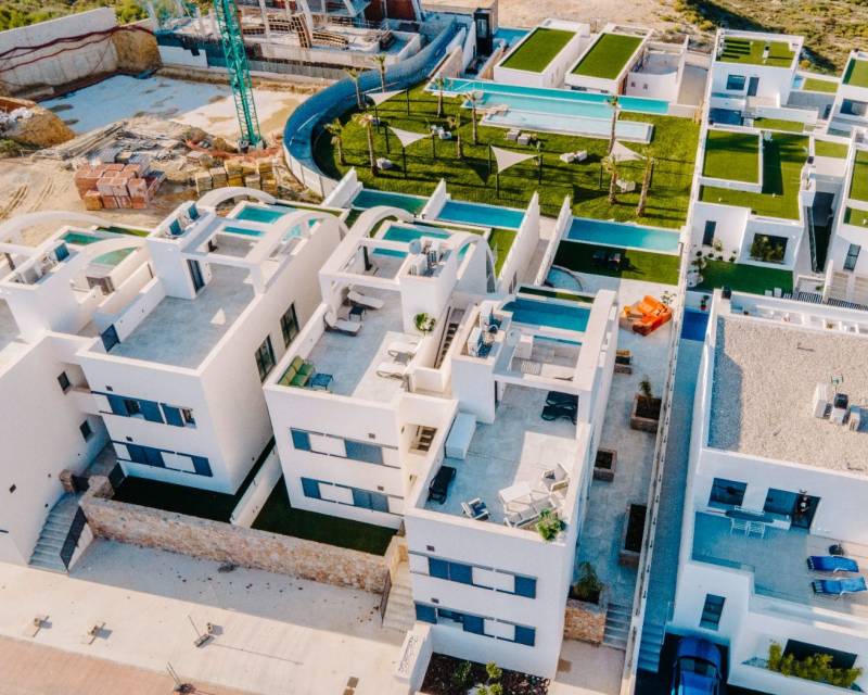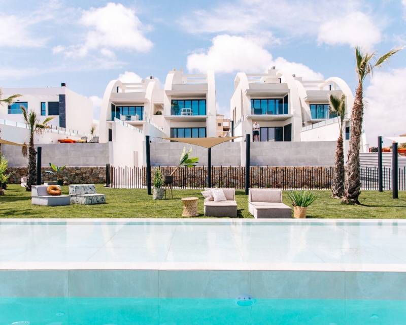 LUXURY AND DESIGN PENTHOUSE NEXT TO GOLF COURSE Luxury flat with 2 spacious bedrooms, 2 bathrooms, one of the bedrooms en suite with private bathroom. It has a kitchen open to the living-dining room, a terrace of 22 m2 with views to the exterior garden and a parking space + storage room. The property has a private solarium with access from the communal lift and some units have a private swimming pool on the roof terrace. The communal areas have a communal outdoor swimming pool and an indoor sauna with fitness. Surrounded by golf courses such as La Finca, La Marquesa, Villamartin, Las Colinas and Campoamor Golf. Close to major cities such as Alicante and Murcia. Rojales is only 5 km from the sandy beaches of Guardamar, El Moncayo and La Mata. A little further away are the beaches of Torrevieja and Orihuela Costa, where the famous shopping centres Habaneras and La Zenia Boulevard are located.