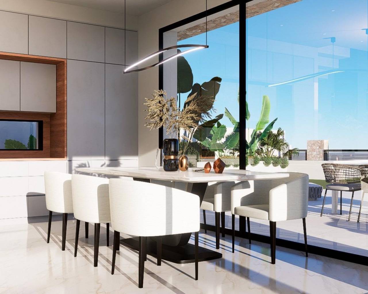 NEW BUILD VILLAS IN FINESTRAT New Build villas located in Balcon de Finestrat. New Build deverlopment of 15 totally independent luxury villas in a unique setting close to the best beaches of the Mediterranean and all services. Villas build over 2 floors, plus basement, and has 4 bedrooms, 4 bathrooms, open plan kitchen with lounge, build-in wardrobes, private solarium, garden with the pool and parking space for 2 cars. An option you can have a lift at an extra cost. Villas located close to 2 golf courses, theme parks, a large shopping centre and a few minutes from the beaches of Benidorm. Finestrat located in the Marina Baixa region of the Costa Blanca, close to neighbouring Benidorm and about 40 kilometres from the city of Alicante and the international airport. Benidorm is just a five-minute drive from the properties and offers all the services you would need including shops, bars, restaurants, supermarkets, banks, pharmacies and several private international schools. Close to the beaches of Levante, Poniente and Cala de Finestrat, with more than 6km in length that are among the best in Europe awarded by the European Union with Blue Flags. All leisure services such as the theme parks of Aqua Natura, Terra Mítica, Terra Natura, Aqualandia and Mundomar, Sierra Cortina and Villaitana Golf courses, hiking and climbing in Puig Campana an incomparable natural setting or enjoy of nautical sports.
