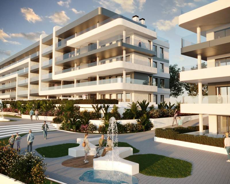 NEW BUILD RESIDENTIAL COMPLEX NEAR MUTXAMEL Come and live in a complex in an area with a high quality of life, located on the Bonalba golf course with stunning sea views near Mutxamel, a short distance from the Alicante Airport, the city of Alicante and the beaches.. Residential complex has 2 and 3 bedrooms apartments with large terraces, and 2, 3 and 4 bedrooms villas. A dream home where you will create the best memories of your life. Exclusive homes with all the necessary amenities close at hand. Unwind after a long working day in the swimming pool of the complex. Every nook and cranny has been developed with attention to detail. You’ll want to invite friends and family to enjoy your spacious two, three or four-bedroom home every weekend. Enjoy the life of your dreams at the complex: morning runs; a relaxing swim in the complex pool; a charming meal with friends and family in the Social Club; and an afternoon’s fun with the kids in the children’s areas. And all this in exclusive surroundings a few steps away from a relaxing game of golf. Whether alone, with your pet or with your loved ones, every spot you visit is designed to provide visual comfort and to keep you and your loved ones safe. During your strolls through the communal areas of the complex, you may find: A large fountain finished in blue tiles. A poolside area with natural grass. Furniture spread throughout the plot on which to rest and contemplate the views of the complex. Small areas of artificial lawn and ceramics with lustrous wood tone. The complex is fully fenced off with video intercom for your safety and the safety of those who matter most to you. Buildings and architecture with great elegance and contemporary style that will captivate you. As if enjoying a space with impeccable style was not enough, your new home next to the Bonalba golf course will have large terraces equipped with glass railings allowing you to take in the sea views in impeccable detail. Just imagine waking up every morning to face the extraordinary Alicante dawn. Have breakfast in the best light in Spain: the light of the Mediterranean.