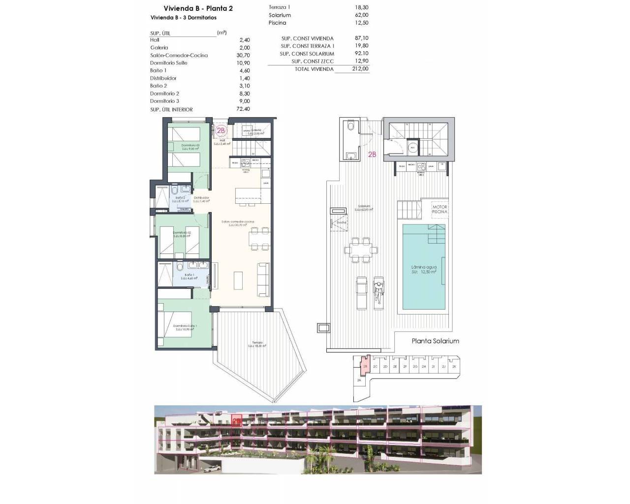 NEW BUILD BUILD RESIDENTIAL COMPLEX IN BENIJOFAR New Build residential complex in the quiet area of Benijofar. Residential made up of 35 apartments and penthouses with 2, 3 and 4 bedrooms and 2 bathrooms, open plan kitchen with the lounge area, fitted wardrobes, terraces. The penthouses also have a large private solarium where you can enjoy the beautiful summer sunsets. New Build residential complex has a large green area with a swimming pool. An options underground parking space and storage at an extra cost. Benijofar it is a lovely village with a charming church and all services such as supermarkets, pharmacies, banks, restaurants and natural park located very close to the villas. There are several golf courses close by as well as water parks in nearby Rojales and Torrevieja. The best beaches of Guardamar are only 10 minutes away by car with more than 11 km of white sand dunes and crystal clear waters. Benijófar located a few minutes from the N-332 and AP-7. Just 30 minutes from Alicante airport, 10 minutes from the beaches of Guardamar and Torrevieja.