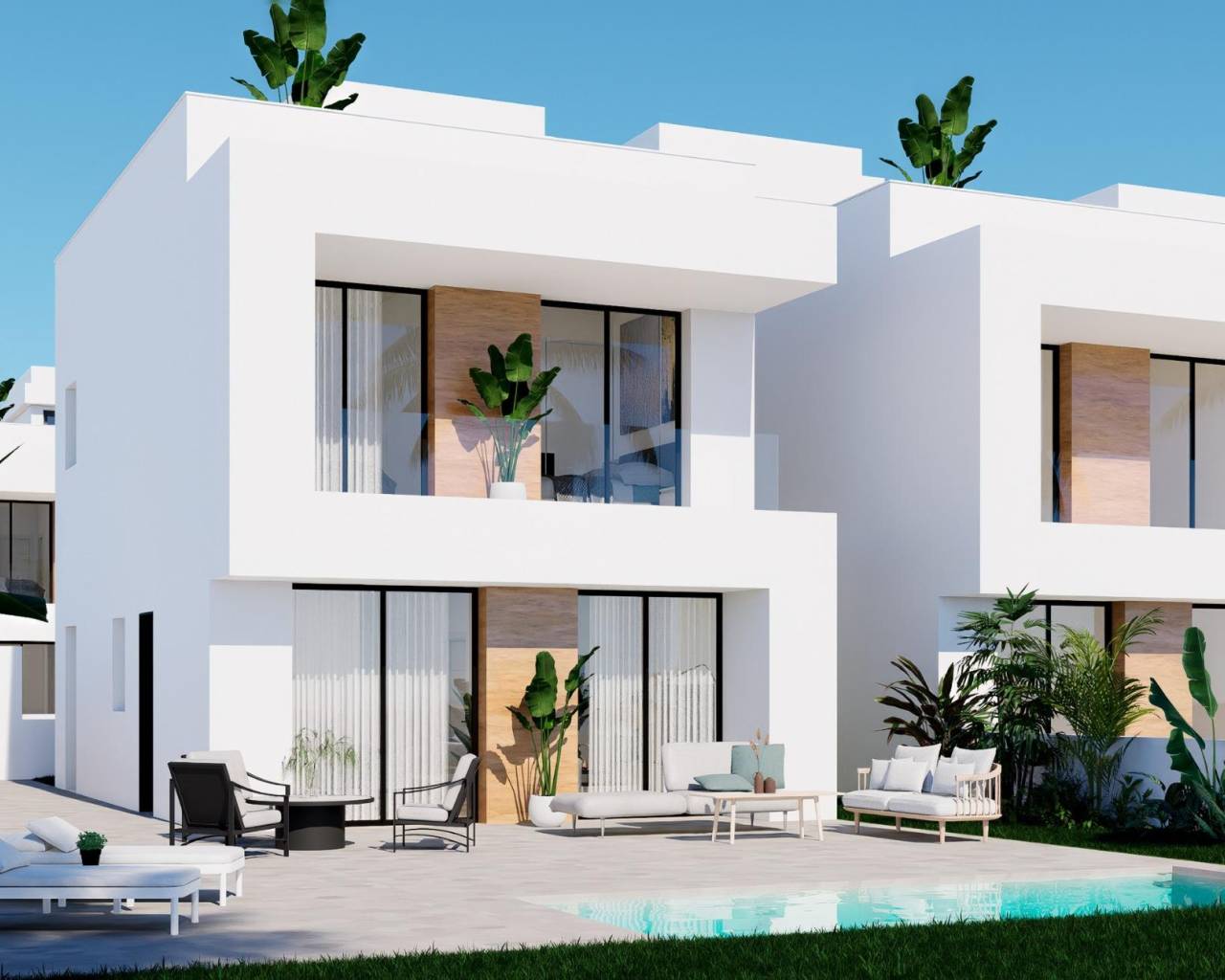 Newly built residential development of detached and semi-detached villas in La Zenia, Orihuela Costa. Modern homes built on 2 floors, with 3 bedrooms, 2 bathrooms, open-plan kitchen with living room, built-in wardrobes, ducted air conditioning, solarium, private garden with swimming pool and parking space. La Zenia is located on the Costa Blanca South just south of the major town of Torrevieja. This stretch of the coast is known as the Orihuela Costa. La Zenia is a small but busy beach tourist resort. It has many restaurants, bars, shops and good facilities due to the large number of people who live here all the year round. There are many Irish bars including the well-known Paddy's. Most bars show Sky Sports and it is easy to find a good all-day English breakfast in one of the many cafes and restaurants. Shopping Centre La Zenia Boulevard you can enjoy fashion, leisure and restoration all in the same place. Complex located 40 minutes from Alicante airport and 1 hour Murcia - Corvera airport.