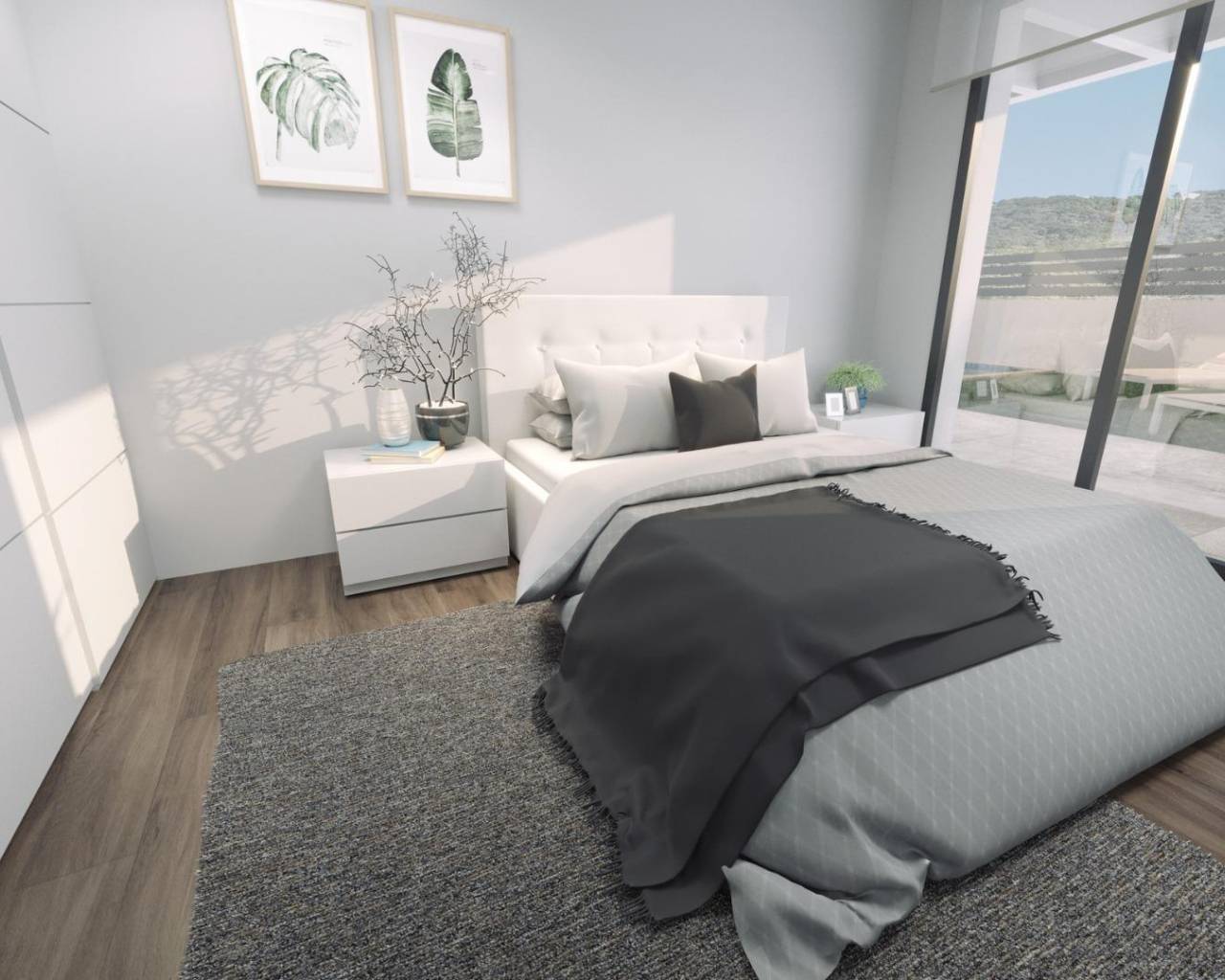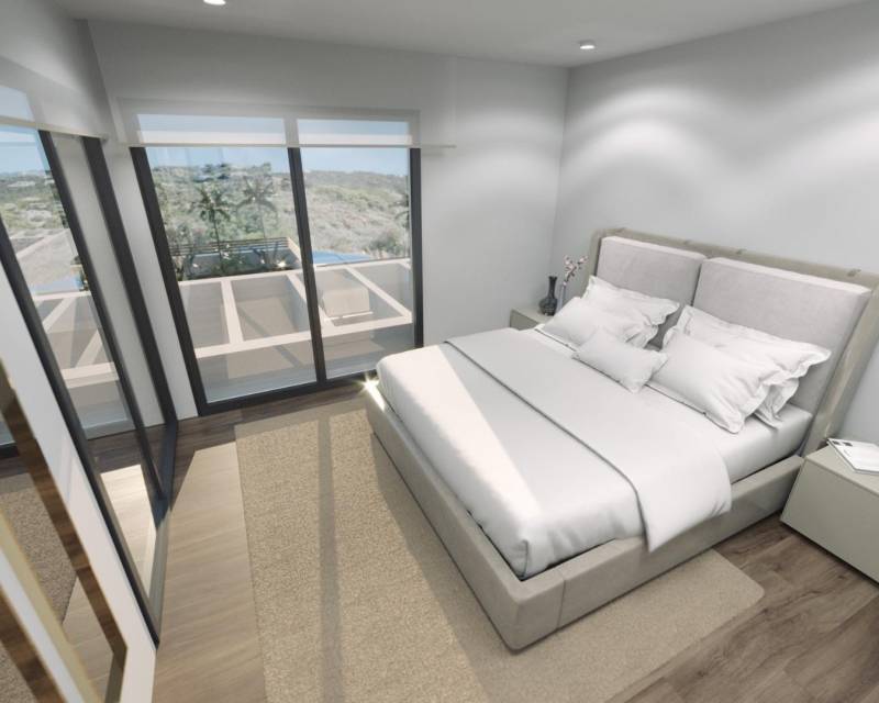 NEW BUILD VILLAS IN FINESTRAT New Build project of 10 modern design villas, in a natural setting with views of the sea and the mountains, near the Puig Campana golf course, and a short distance from the towns of Finestrat and Benidorm. The project will be divided into two construction phases, which in turn include two types of homes, with 1 or 2 floors, 3 double bedrooms, 2 or 3 complete bathrooms, living-dining room with integrated kitchen, laundry room, large terrace and garden, private pool, outdoor parking, 1 or 2 multipurpose basements and in some models closed underground garage. An options for a solarium at an extra cost. Villas built with the best qualities and latest advances in construction, among others: - Glass railings that do not break the continuity of the views. - First quality porcelain stoneware flooring. - Armoured entrance door. - Aluminium exterior carpentry with thermal bridge break and double insulating glass with low emissivity with air chamber and safety in areas at risk of breakage. - Smooth interior carpentry, made of white lacquered wood with stainless steel handles and fittings. - Fully equipped sliding wardrobes and dressing rooms. - Production of domestic hot water through a heat pump system with a 100L accumulator tank, with the support of solar panels on the roof. - High-grade electrical installation 9.2kw. - Installation of air conditioning through ducts with machines included. - Minimalist design kitchens, fully equipped with island, furniture and appliances included. - Private pool with lighting and beach area with pavement or artificial grass. - Fully customisable multipurpose basement, depending on the model with a garage area for a vehicle and pre-installation for an electric vehicle. Villas is located in a privileged environment on the Costa Blanca, in an elevated area at the foot of the mountains, surrounded by nature and other similar urbanisations, with excellent views of the sea and its surroundings. Very well connected by road with the nearby town of Finestrat, 10 minutes by car from shopping censers, the A7 motorway, the beaches and the nearby towns of Benidorm and Villajoyosa, and 30 minutes from the city of Alicante and its international airport.