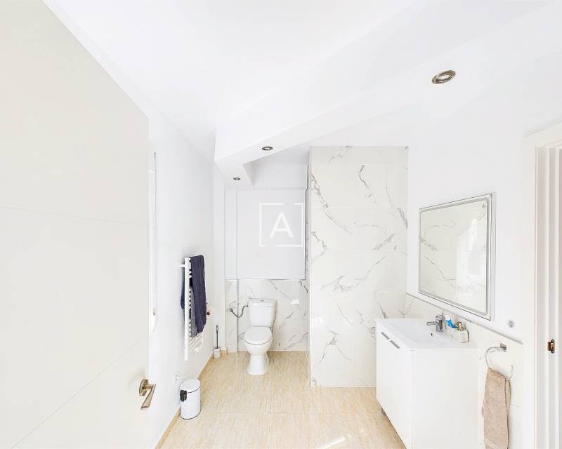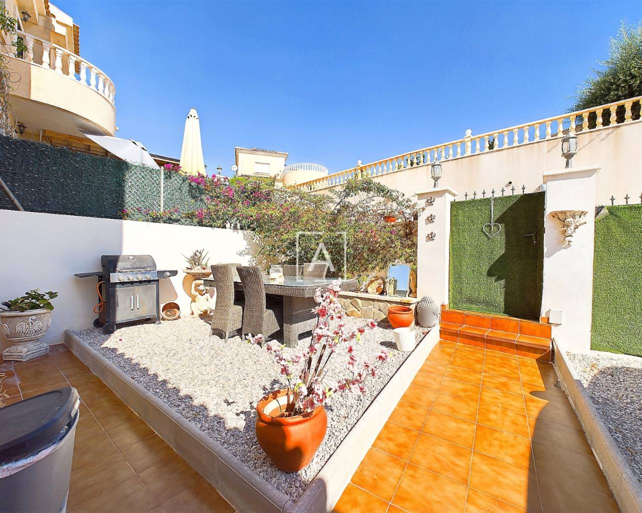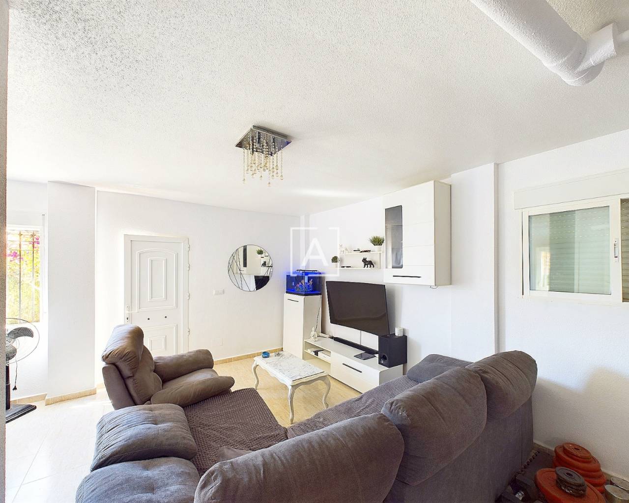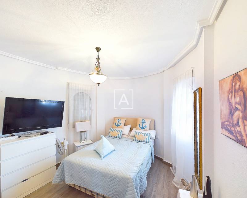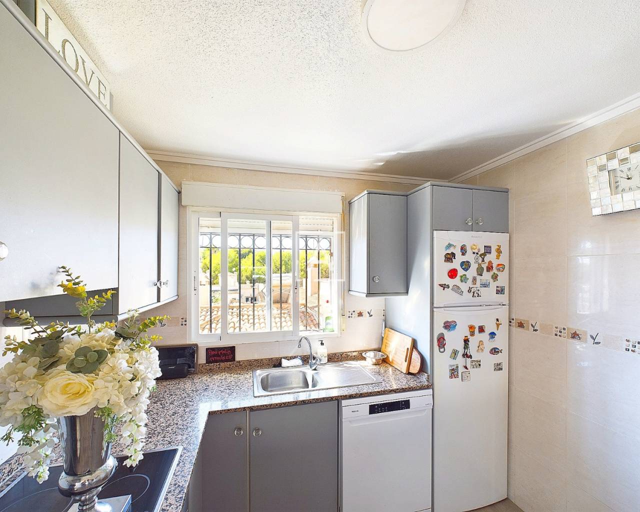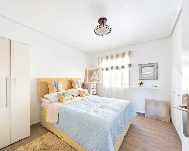 We are delighted to present this exclusive listing, a spacious 3 bedroom 2 bathroom detached Villa in the sought after area of Pinar de Campoverde. In addition this property also features an apartment comprising of living area, bathroom/ dressing area and storage.On the ground level there is a living/dining room with open fire and air con unit. Off the lounge is a well fitted American style kitchen and utility room.On this floor are 2 good sized bedrooms and a bathroom with bath and shower over. On the second floor is a bathroom,again with bath and shower over and a bedroom. Off the bedroom is a solarium and an additional room. The current owners use this as a dressing room however it could be used as an additional guest bedroom/hobby room. Taking some steps down from the ground level is the separate apartment which features a large open plan living area ,” jack and gill” bathroom and bedroom with dressing area and additional storage. It would be possible to install a kitchen this providing a completely independent living accommodation.Outside the apartment is a private south facing seating area. The outside is low maintenance and provides outdoor seating area and parking for 1 car. There is a community pool. Viewing is highly recommended. This property is located close to amenities