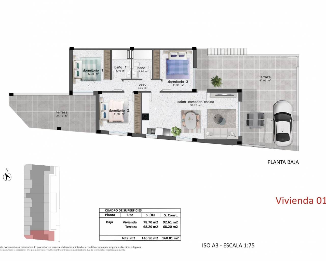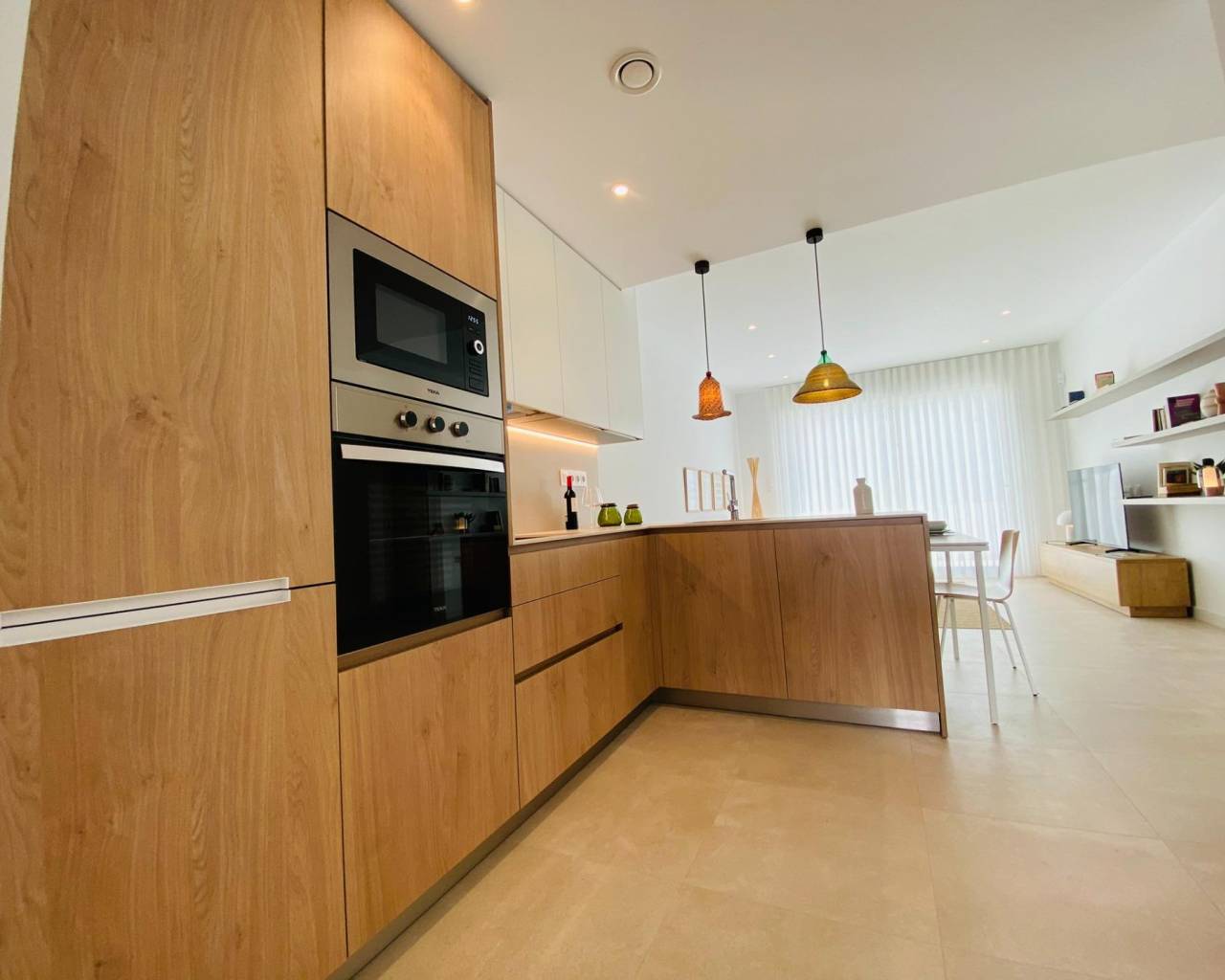 New Build Bungalow Residential Complex in Pilar de la Horadada Exclusive Modern Bungalows in Pilar de la Horadada This new development offers 16 stylish bungalows in the desirable town of Pilar de la Horadada, located in the southernmost part of Costa Blanca. Choose between 2 or 3-bedroom options, each featuring 2 bathrooms. Ground-floor units come with spacious front and rear terraces, providing direct access to the communal pool and garden, while top-floor units boast a large private rooftop solarium. Spacious Living with Modern Features Each bungalow includes a bright and open living/dining area and a fully equipped kitchen with large sliding doors that connect the indoor and outdoor spaces seamlessly. Bedrooms feature built-in wardrobes. Ducted air conditioning is installed, and the complex includes an elevator for easy access to upper floors. Private parking spaces are also included for all units. Prime Location in Pilar de la Horadada Pilar de la Horadada is a traditional Spanish town with a lively main street offering supermarkets, shops, restaurants, and bars. The beautiful beaches of Torre de la Horadada and Mil Palmeras are just 5 minutes away. The development is conveniently located 40 km from Corvera Airport (Murcia) and 55 km from Alicante Airport, making it an ideal location for both permanent living and holiday getaways.