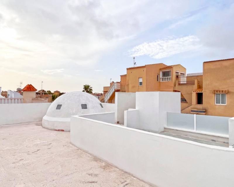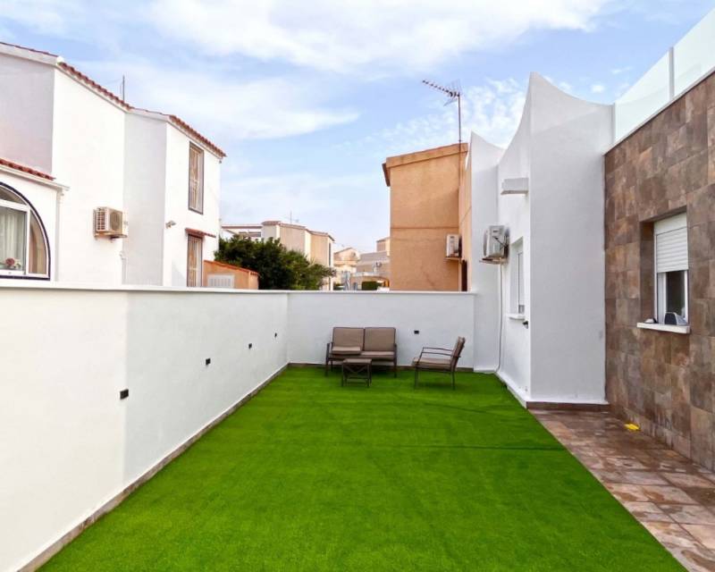 This beautifully renovated, single-level home in the heart of Playa Flamenca offers the perfect blend of modern comfort and outdoor living. Boasting 2 spacious bedrooms and 2 stylish bathrooms (one of which is en suite), this home is designed for convenience and elegance. The large open-plan living room flows seamlessly into the kitchen and dining area, creating an ideal space for entertaining or relaxing with family. The modern kitchen is fully equipped with sleek appliances and plenty of counter space. Step outside to enjoy the expansive ground-level terrace and garden, with ample room to build your own private pool. The property also features a large roof terrace, perfect for sunbathing, outdoor dining, or simply enjoying the Mediterranean breeze. Located within walking distance to a variety of restaurants, bars, and local amenities, this home offers both tranquility and easy access to the vibrant local scene. It's an ideal opportunity for those seeking a stylish, move-in-ready home in Playa Flamenca.