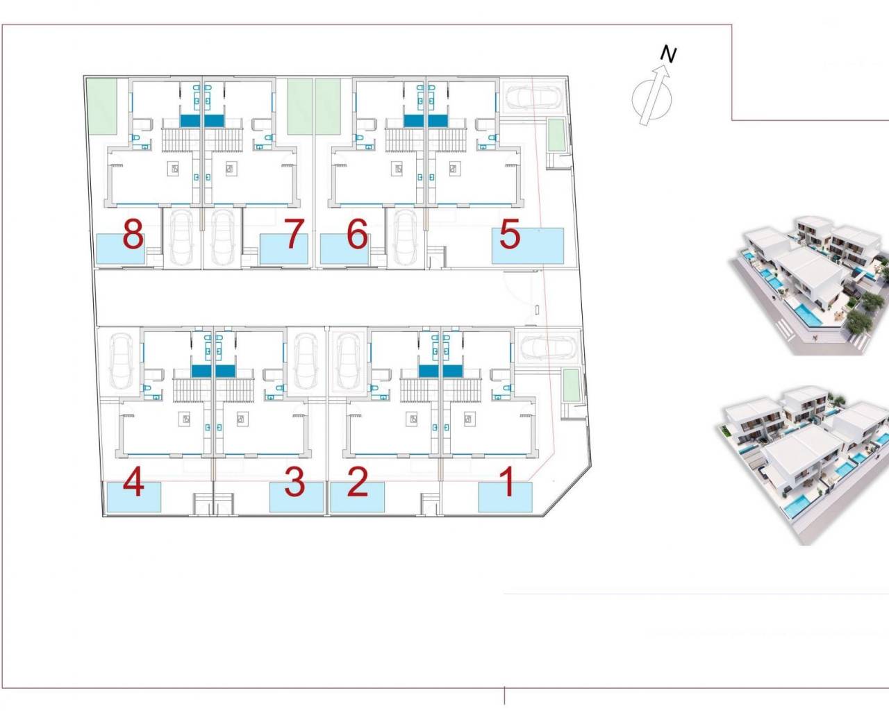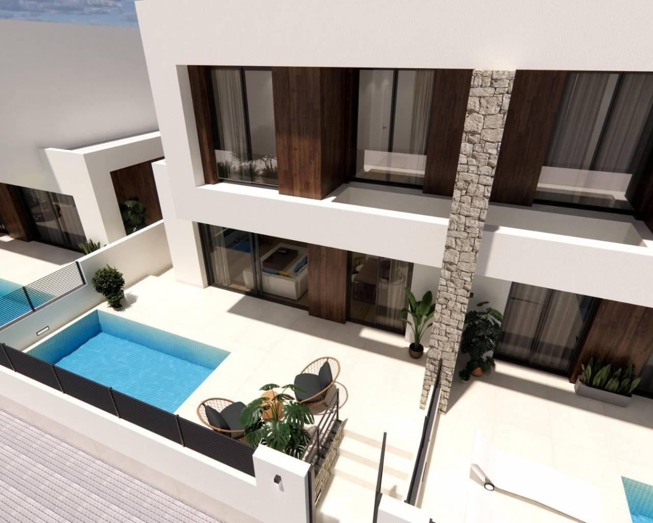 New Build Semi detached villas in Dolores This modern residential development in Dolores features newly built semi detached villas. Designed with contemporary style and comfort in mind, each home is spread over two floors, offering 3 bedrooms and 3 bathrooms. The open-plan kitchen seamlessly connects with the living room, which leads directly to a private terrace and garden. Every home also comes with its own private pool and parking space. High-Quality Finishes and Modern Amenities These homes are constructed using high-quality materials and finishes. Exterior carpentry is made of aluminum with thermal break, and the bathrooms feature glass shower enclosures. LED lighting is installed throughout the property, ensuring energy efficiency and a modern ambiance. These features combine to create a comfortable, stylish living environment for you and your family. Prime Location Near Daily Services Located on the outskirts of the charming town of Dolores, these homes are just a short walk from essential day-to-day services, including shops, restaurants, and local amenities. Dolores is part of the Vega Baja del Segura region, in the southern part of Alicante province, known for its agricultural landscapes and relaxed pace of life. Close to Key Points of Interest La Marina Beach: 10 km Guardamar Beach: 10 km Alicante Airport: 30 km Murcia-Corvera Airport: 60 km Golf Courses: 15 km Shopping Centers: 12 km Perfect for Enjoying the Costa Blanca Lifestyle With the Mediterranean climate, beautiful beaches just a short drive away, and several golf courses nearby, this development offers the ideal balance of relaxation and leisure. Whether you're looking for a holiday home or a permanent residence, these new build homes in Dolores provide modern living in a serene, well-connected location.