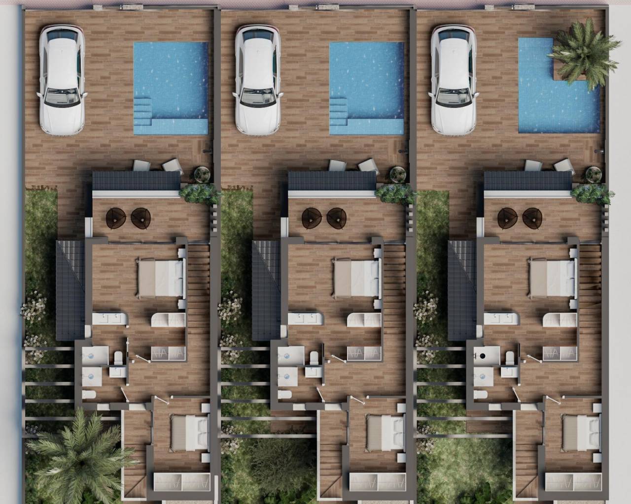 Luxury Villas in San Pedro del Pinatar - Modern Living in a Prime Location Overview of Stunning New-Build Villas Discover the epitome of luxury living in San Pedro del Pinatar with these exceptional new-build villas. Each villa is thoughtfully designed with meticulous attention to detail, offering spacious and sunlit interiors that blend style with comfort. These villas feature an open-plan living room, dining area, and kitchen, creating a seamless flow throughout the main living space. With 3 bedrooms, including a master suite complete with a walk-in closet and ensuite bathroom, these homes are perfect for those seeking both elegance and functionality. Private Outdoor Spaces and High-End Amenities Each villa is set on a private plot of approximately 200 square meters, providing ample space for outdoor living and relaxation. The property includes a private pool, perfect for enjoying warm Mediterranean days, and a designated parking area. An expansive private solarium offers a beautiful space for sunbathing, entertaining, or simply enjoying the peaceful surroundings. These villas offer a high-quality lifestyle with premium amenities and modern comforts in one of Spain’s most desirable coastal areas. Prime Location in San Pedro del Pinatar San Pedro del Pinatar is known for its beautiful beaches, vibrant community, and close proximity to essential services and leisure activities. Located just 900 m from the beach and water sports facilities, these villas allow residents to enjoy all the natural beauty and recreational opportunities of the Mar Menor coast. The villas are also conveniently close to a wide range of local amenities, including shops, restaurants, and bars. Larger shopping centers are just a short drive away, providing residents with easy access to a variety of retail options. Close Proximity to Key Points of Interest Murcia-Corvera Airport: Approximately 30 km away, offering convenient international and domestic travel options. Alicante Airport: Just an hour's drive (around 85 km), providing access to numerous global destinations. Several Golf courses like Lo Romero, Roda Golf or La Serena within a short drive, perfect for golf enthusiasts. Shopping Centers: A 10-minute drive to Dos Mares Shopping Center, offering various retail stores, restaurants, and entertainment options. Beaches of Mar Menor: Just 900 m from the villas, these sandy shores are ideal for relaxation, swimming, and water activities. Experience the Charm of San Pedro del Pinatar San Pedro del Pinatar offers the charm of a traditional Spanish coastal town while providing all modern conveniences. Its strategic location near the Mar Menor and Costa Cálida ensures easy access to beautiful beaches, high-quality amenities, and a vibrant local culture, making it the ideal place to call home.