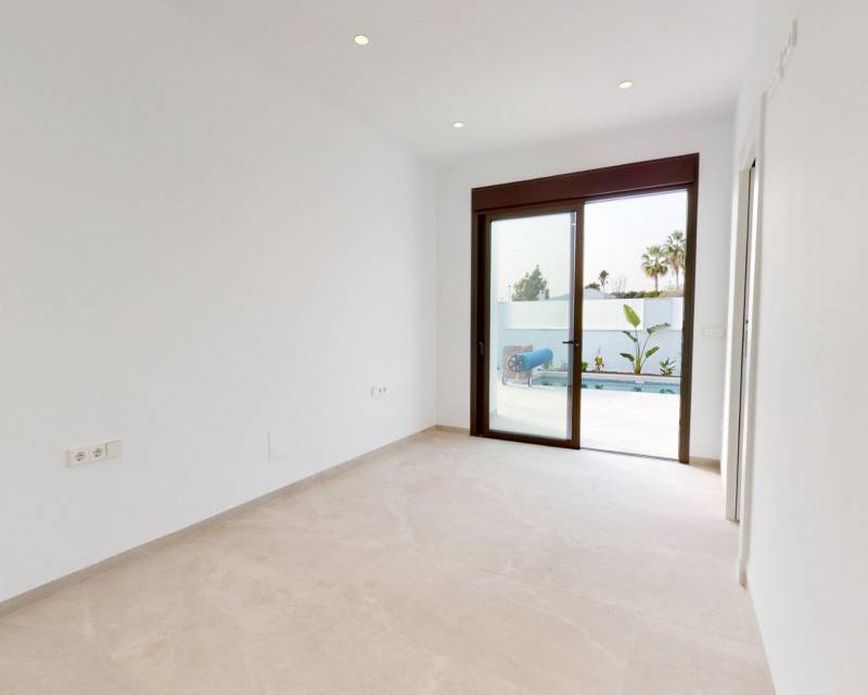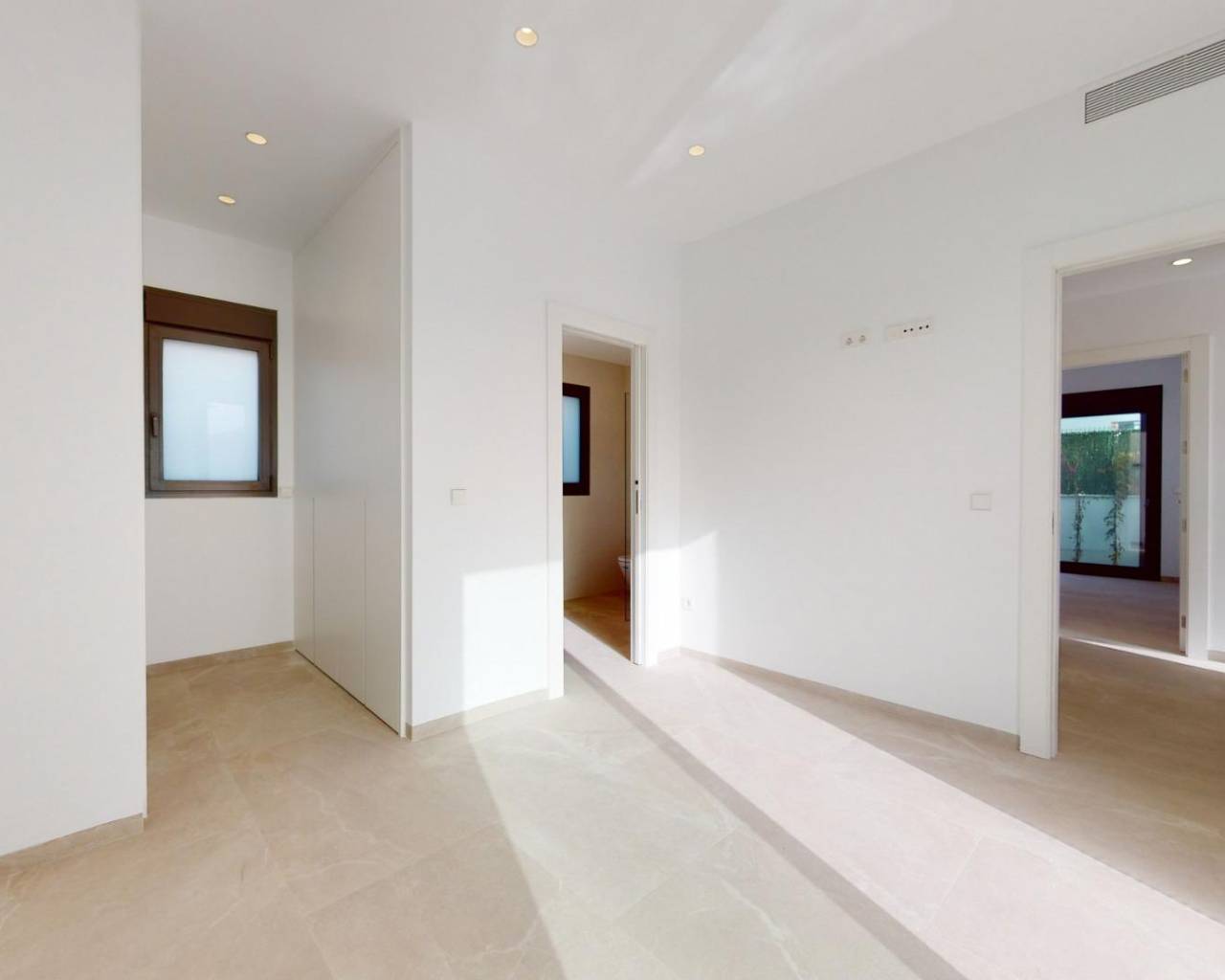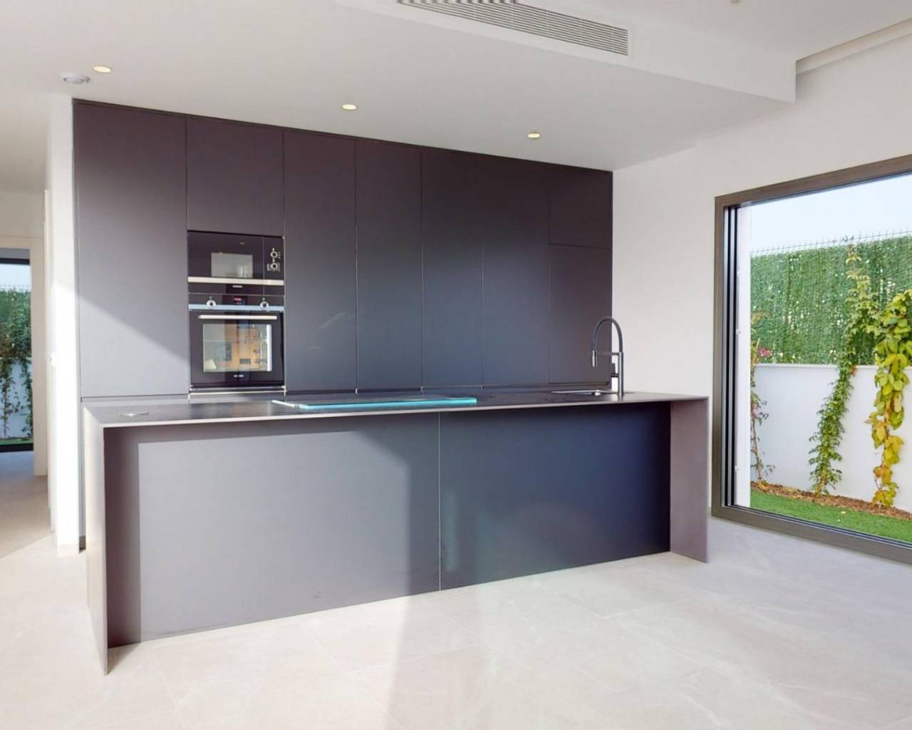 NEW BUILD VILLAS IN LOS ALCAZARES New Build residential of villas and townhouses in Serena Golf, Los Alcazares. Modern villas has 3 bedrooms, 3 bathrooms, open plan kitchen with living area, terrace, solarium, private garden with the pool and parking space. Fully fitted kitchen in white gloss or wood colour. Technological technological quartz. Stainless steel sink. Induction hob with integrated extractor fan, oven, microwave, washing machine, integrated refrigerator, integrated dishwasher. Air conditioning: Complete installation with FUJITSU ducts. Swimming pool: Dimensions according to the property, with steps, blue ceramic tiles and white LED lighting. Pre-installation for heat pump. La Serena Golf is located in the municipality of Los Alcázares, occupying an area of 60 hectares on the edge of the Mar Menor, a perfect natural environment to enjoy the best climate in Europe. Los Alcázares located in the Region of Murcia near the beaches of Mar Menor, where you can practice various water sports, surrounded by several golf courses. Here you can practice various water sports, surrounded by several golf courses and the city of Cartagena less than 15 minutes by car and 22 km from Murcia airport, therefore having a wide cultural, gastronomic and sports offer within reach.