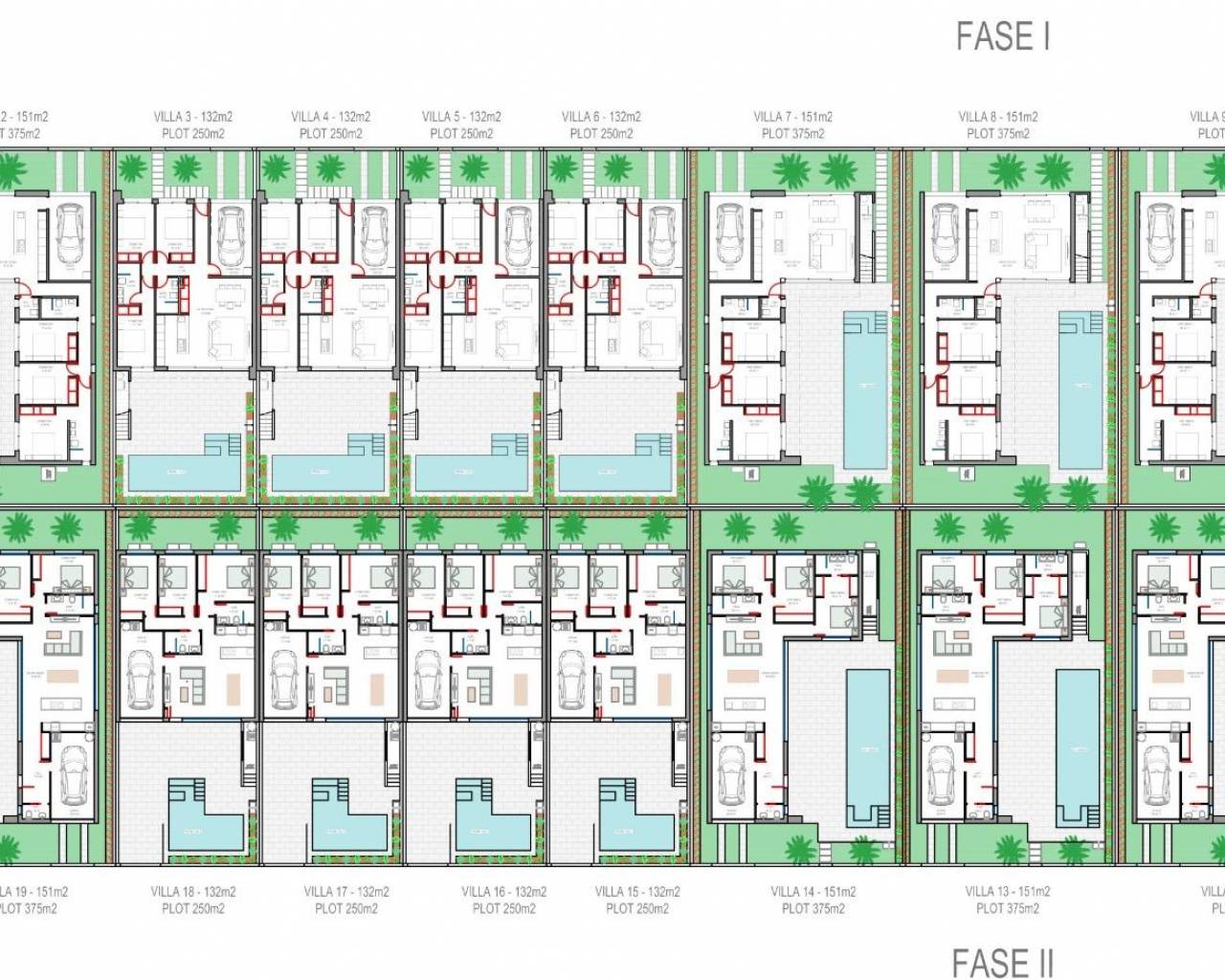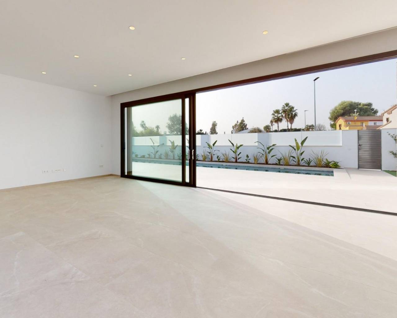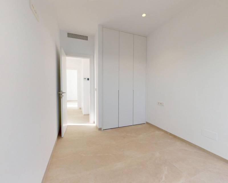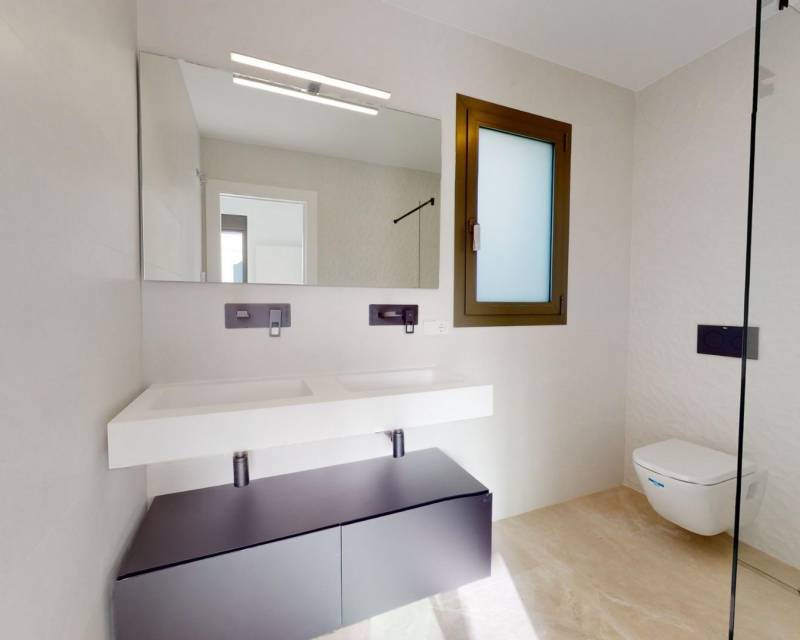 NEW BUILD VILLAS IN LOS ALCAZARES New Build residential of villas and townhouses in Serena Golf, Los Alcazares. Modern villas has 3 bedrooms, 3 bathrooms, open plan kitchen with living area, terrace, solarium, private garden with the pool and parking space. Fully fitted kitchen in white gloss or wood colour. Technological technological quartz. Stainless steel sink. Induction hob with integrated extractor fan, oven, microwave, washing machine, integrated refrigerator, integrated dishwasher. Air conditioning: Complete installation with FUJITSU ducts. Swimming pool: Dimensions according to the property, with steps, blue ceramic tiles and white LED lighting. Pre-installation for heat pump. La Serena Golf is located in the municipality of Los Alcázares, occupying an area of 60 hectares on the edge of the Mar Menor, a perfect natural environment to enjoy the best climate in Europe. Los Alcázares located in the Region of Murcia near the beaches of Mar Menor, where you can practice various water sports, surrounded by several golf courses. Here you can practice various water sports, surrounded by several golf courses and the city of Cartagena less than 15 minutes by car and 22 km from Murcia airport, therefore having a wide cultural, gastronomic and sports offer within reach.