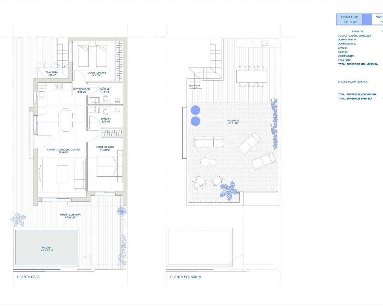 NEW BUILD SEMI-DETACHED VILLAS IN ROLDAN New Build semi-detached villas in Roldan, Torre Pacheco. Modern villas build over one floor, has 2 or 3 bedrooms, 2 bathrooms, open plan kitchen with the lounge area, fitted wardrobes, private solarium. All villas has private garden with pool and parking space. Roldan itself is a traditional town with all the local amenities you will need including Supermarkets, Restaurants, Bars, Health Clinic, Pharmacy, Police Station, Petrol Station, Mechanics, Dentists, Doctors and more. The nearby golf resorts of La Torre, & Terrazas are easily accessible, Corvera Airport is 15 minutes away & the beaches of the Mar Menor just 20 minutes drive.