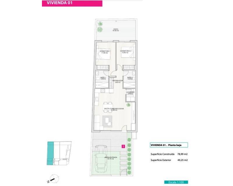 Newly built bungalows in Lo Pagán: Modern living close to the beach Prime location in Lo Pagán, San Pedro del Pinatar Discover the perfect coastal lifestyle with these newly built bungalows in Lo Pagán, a charming area of San Pedro del Pinatar. Located just 1.2 km from the beautiful Villa Nanitos Beach, you are a 15-minute walk from sandy beaches and the iconic Molino Quintín. This prime location is perfect for beach lovers and water sports enthusiasts, with yacht clubs and marinas nearby. Plus, all essential amenities such as supermarkets, bars and restaurants are just a few minutes' walk away. Features These stylish bungalows feature 2 bedrooms, 2 bathrooms, an open-plan kitchen and a living room. The bungalows have pre-installation for air conditioning, fitted wardrobes and modern interiors. The ground floor units have a large terrace with the option of adding a private pool (available at an additional cost), while the upper floor units have a private solarium with a pool included, perfect for relaxing under the Mediterranean sun. High-quality finishes Each bungalow includes a parking space, and all apartments have high-quality finishes. Features include Bosch kitchen appliances, electric shutters, pre-installation for ducted air conditioning, fully equipped bathrooms and LED lighting both inside and outside. Ideal for year-round living Lo Pagán offers a peaceful lifestyle with a welcoming and established community. Residents can enjoy activities throughout the year thanks to the region's mild winter climate. The area has indoor swimming pools, sports facilities and a wide variety of social events. The natural mud baths and the calm waters of the Mar Menor add to its appeal, making it a privileged destination for wellness and relaxation. Nearby attractions Dos Mares Shopping Centre: 5 minutes by car Murcia Airport (Corvera): 30 minutes by car Alicante Airport: 1 hour by car Golf courses and marinas are within easy driving distance, making it an excellent location for both leisure and convenience.