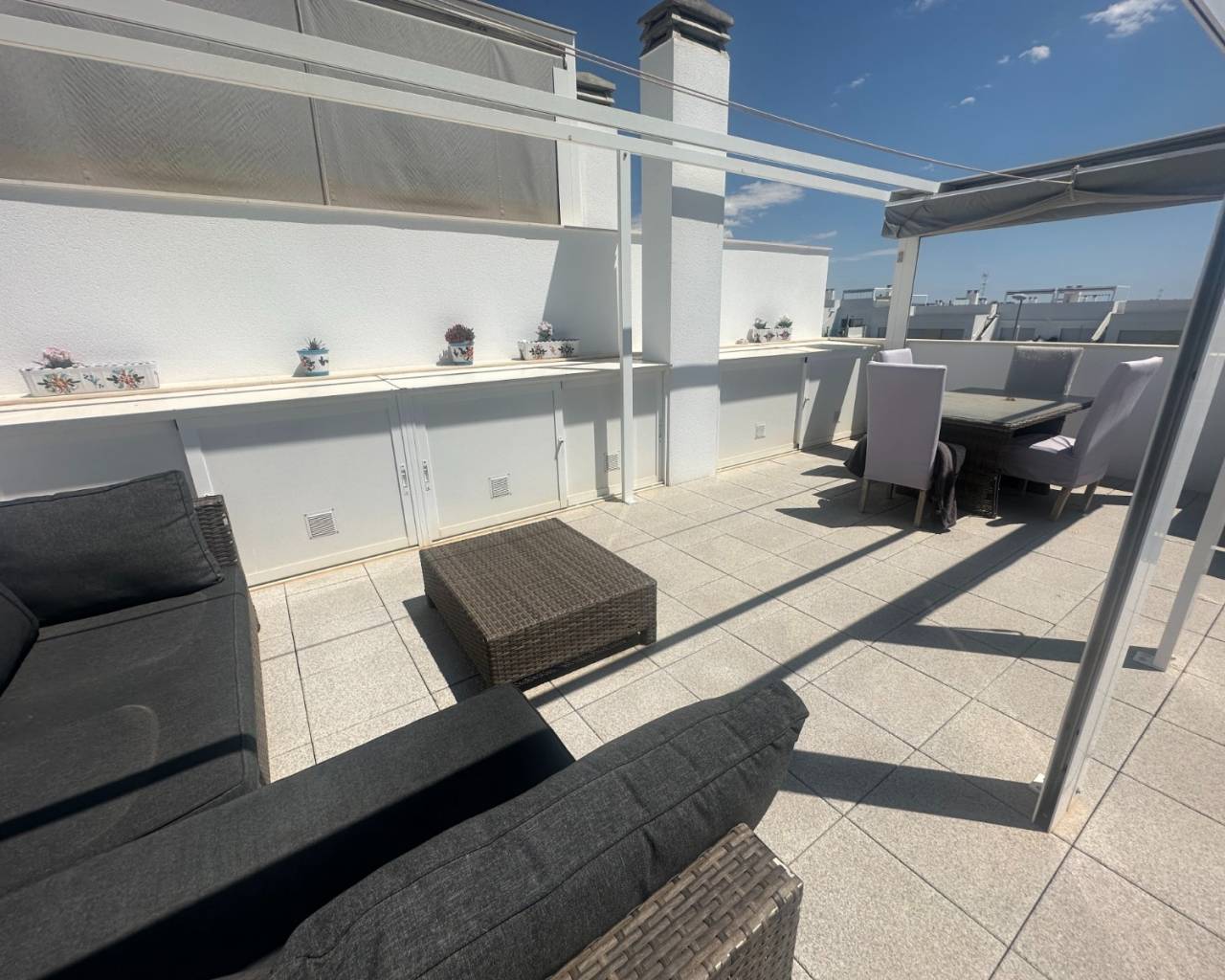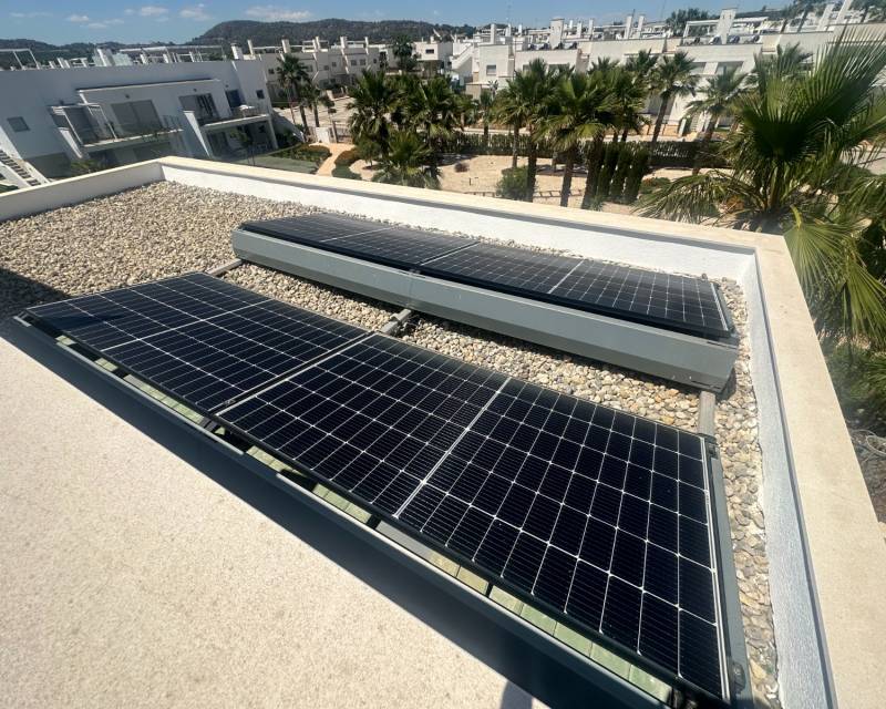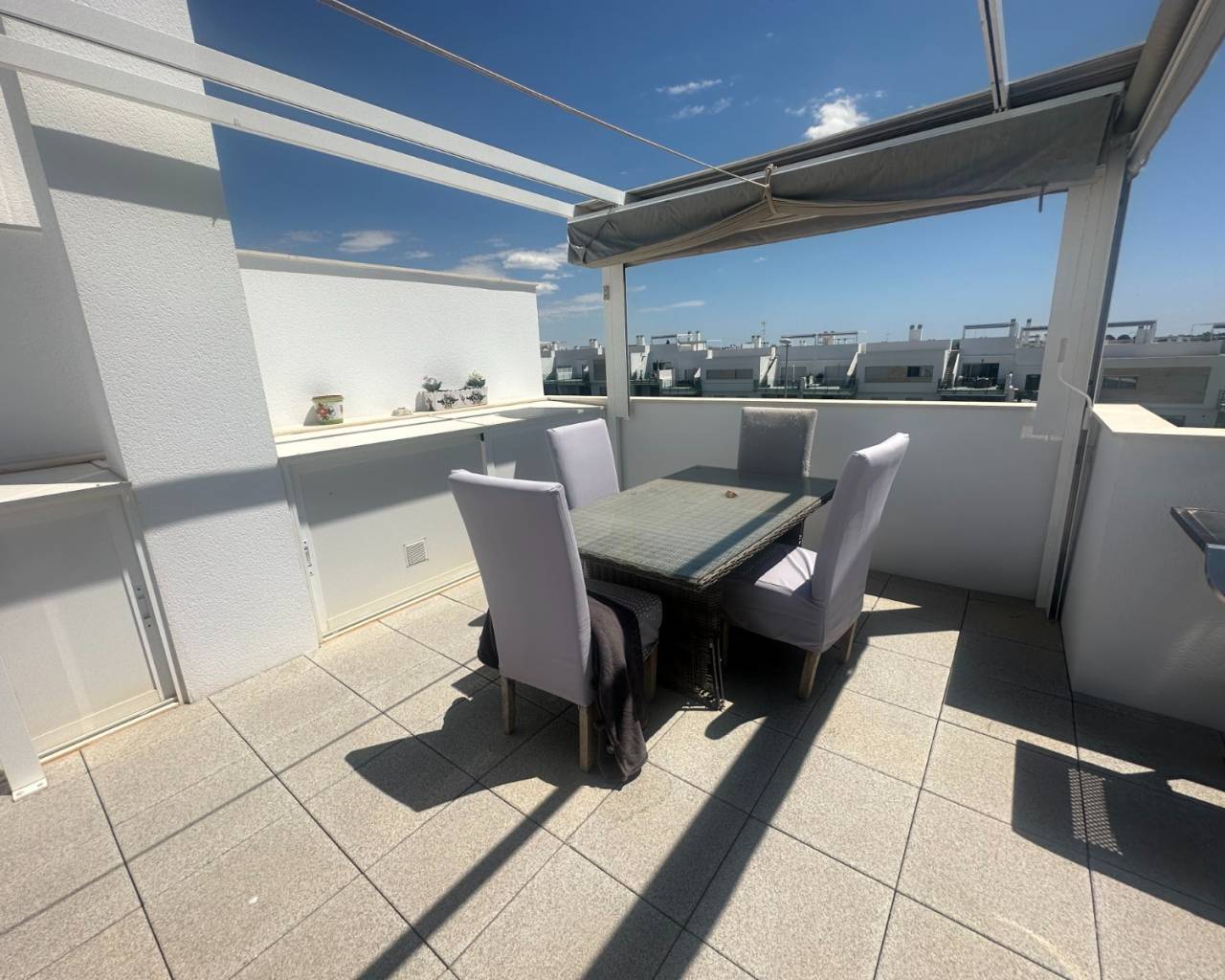 New listing ! Superb top floor apartment in the sought after Vistabella golf complex Residencial Capri 4. The apartment consists of an open plan living space with kitchen, 2 double bedrooms , 2 bathrooms (master en suite) , west facing terrace overlooking the landscaped gardens and a sun drenched solarium with awnings and built in storage . The property comes fully furnished and benefits of air conditioning Community fee €60 per month Suma €227 per year