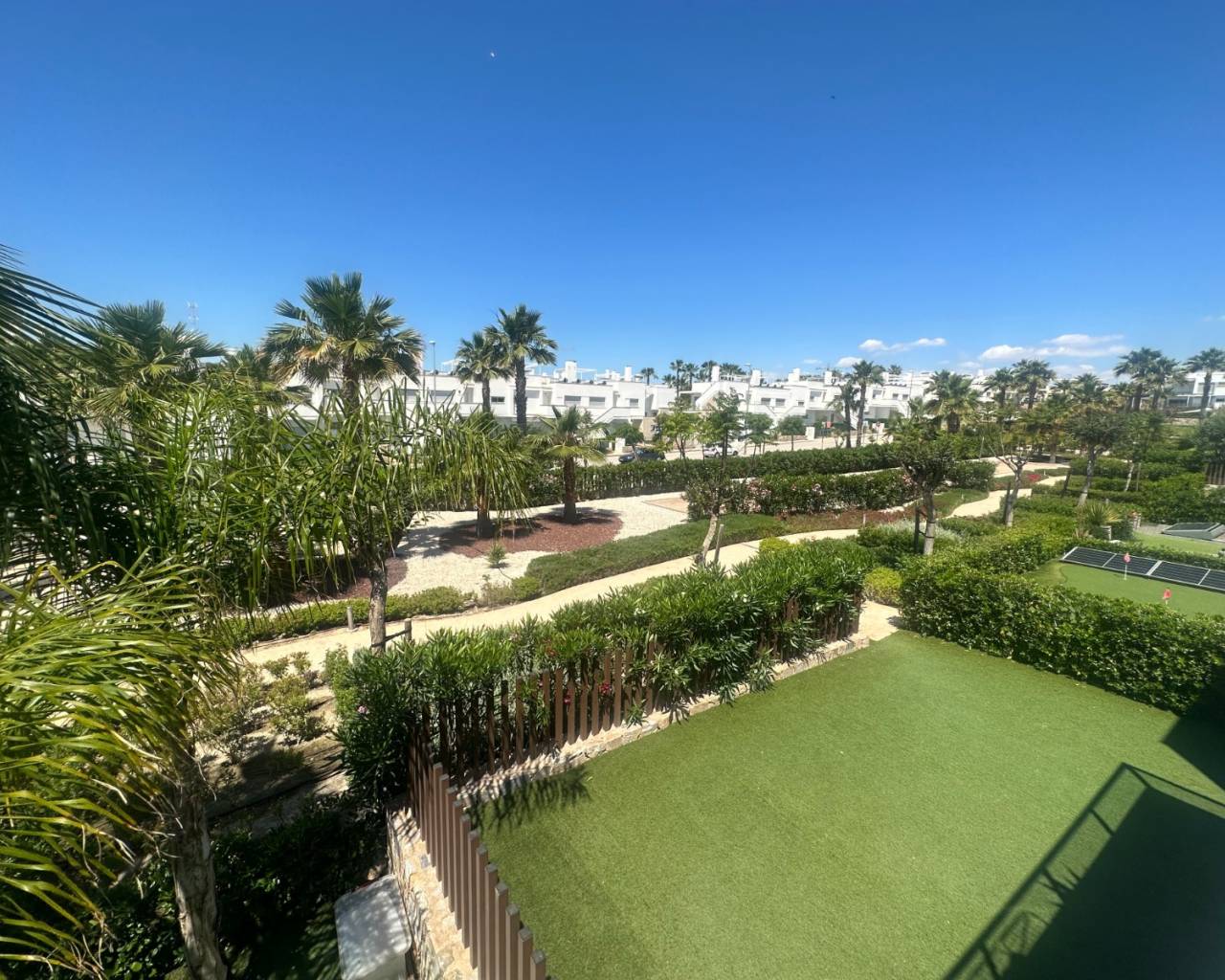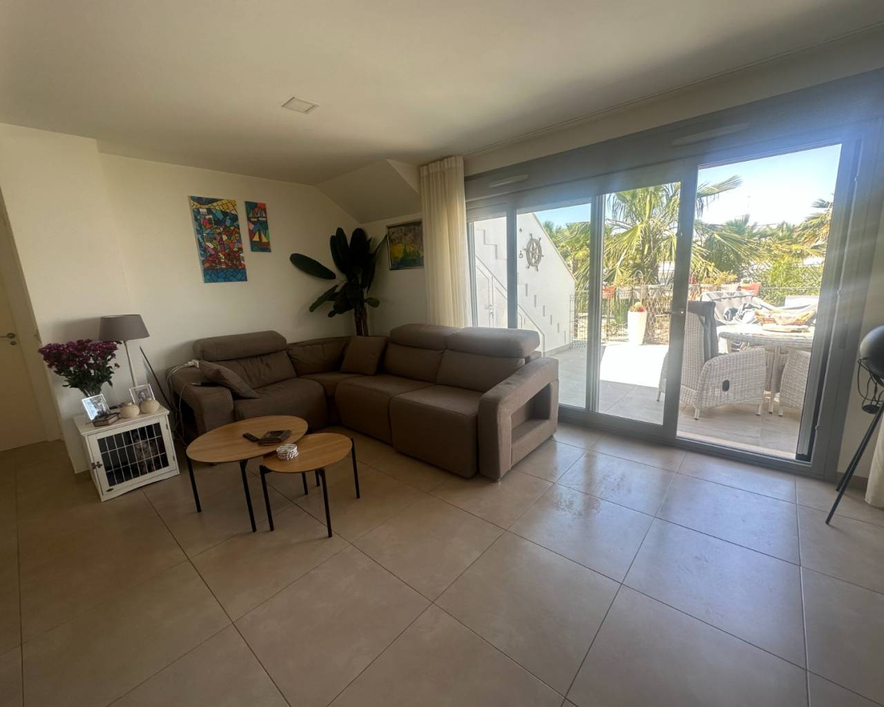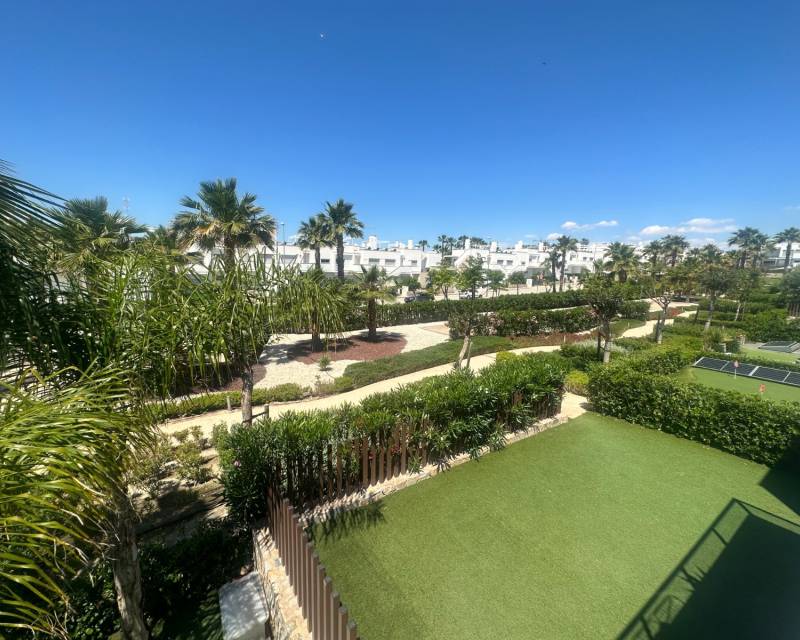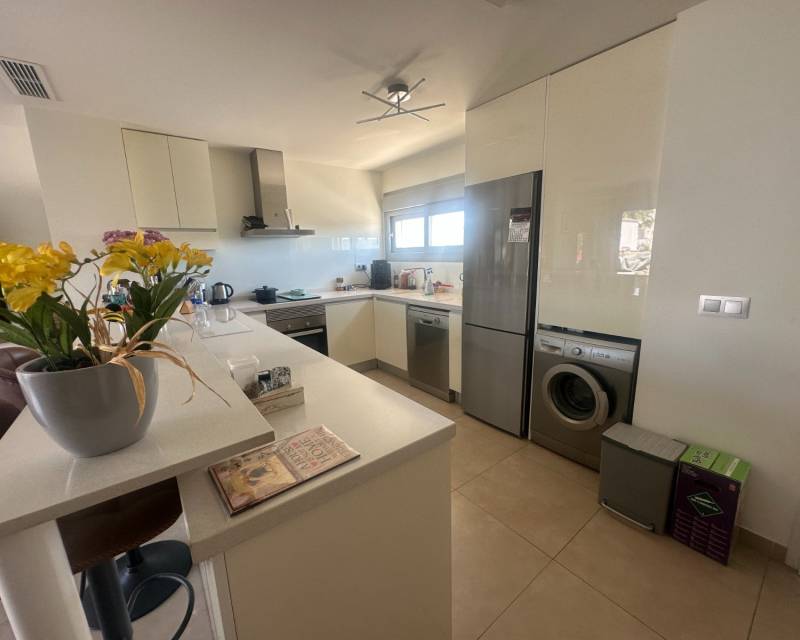 New listing ! Superb top floor apartment in the sought after Vistabella golf complex Residencial Capri 4. The apartment consists of an open plan living space with kitchen, 2 double bedrooms , 2 bathrooms (master en suite) , west facing terrace overlooking the landscaped gardens and a sun drenched solarium with awnings and built in storage . The property comes fully furnished and benefits of air conditioning Community fee €60 per month Suma €227 per year