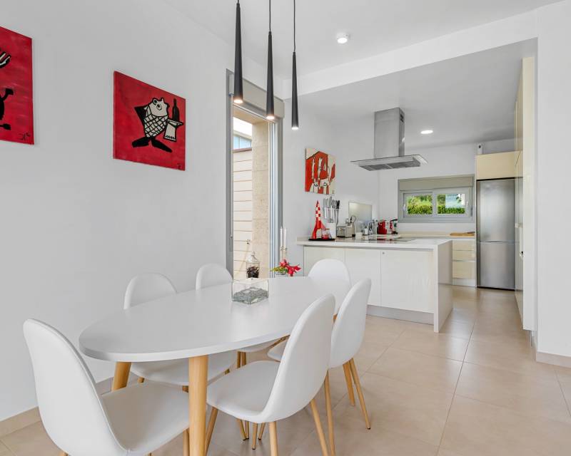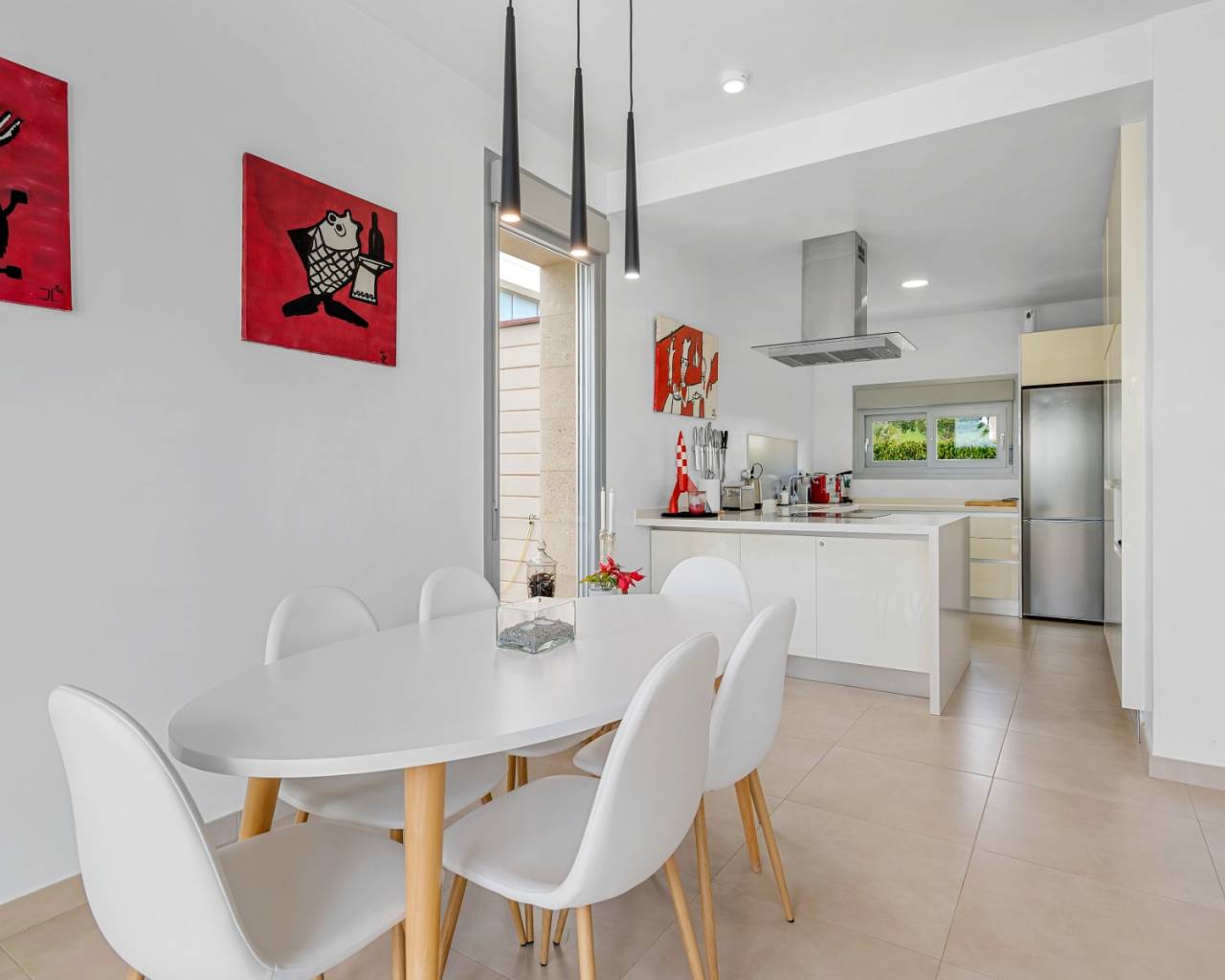 This recently refreshed villa offers everything you’re looking for in a comfortable and stylish home under the sun. The property features 3 spacious bedrooms and 2 modern bathrooms, one of which includes a separate laundry area. The bright and spacious living room flows seamlessly into the open kitchen, which is equipped with additional built-in cabinets along the entire wall – perfect for extra storage and a sleek finish. The entire interior has been recently repainted and regrouted, making the home move-in ready. Enjoy outdoor living all year round thanks to the heated private pool, surrounded by a beautifully landscaped garden with real grass and decorative plants. A high-quality 12m² wooden garden house provides extra storage or can serve as a hobby space. A unique feature of this home is the osmosis water system that provides purified water throughout the entire house – a real added value for comfort and health. In addition, all windows are extra secured for your peace of mind. The location is ideal: just a 5-minute walk to the golf course and the cozy clubhouse. Whether you're an avid golfer or simply looking for peace and luxury close to all amenities – this villa has it all.