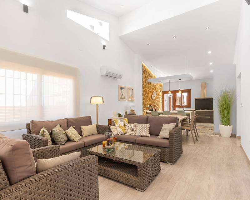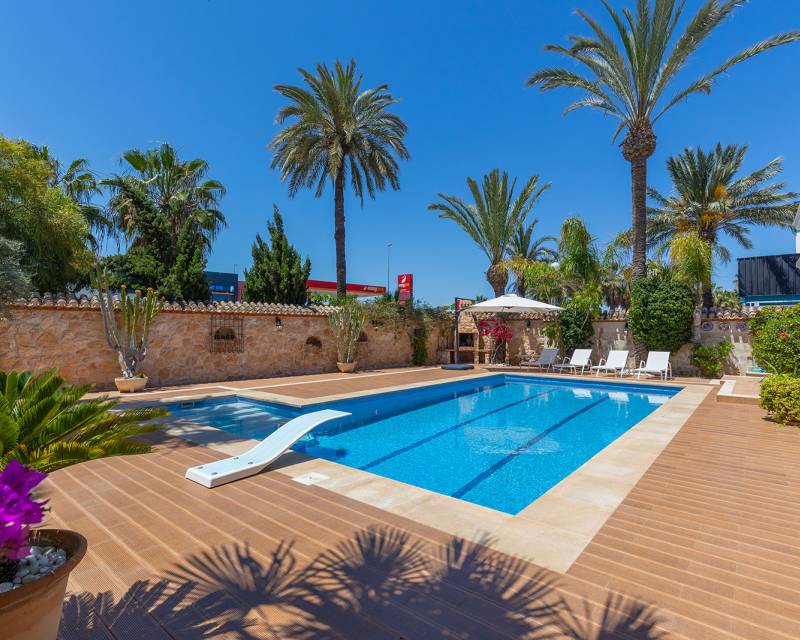 We present this charming villa located in one of the most privileged areas of the Costa Blanca: Punta Prima, just a few steps from the sea. The property has a built area of 168 m², set on a spacious 540 m² plot, offering privacy, comfort, and ample outdoor space to enjoy. The villa features 4 spacious bedrooms, 2 full bathrooms, a bright living-dining room with direct access to the exterior, and a modern fully equipped open-plan kitchen. Outside, the property boasts a private pool, barbecue area, sunny terraces, and a Mediterranean garden – ideal for enjoying the climate all year round. Punta Prima is a well-established coastal area, known for its direct access to the sea, fine sandy beaches, natural coves, and peaceful environment. All essential services are nearby: restaurants, supermarkets, pharmacies, shopping centres such as La Zenia Boulevard, and excellent road connections. Just 10 minutes by car from the centre of Torrevieja, and surrounded by golf courses, sports facilities, and green areas.