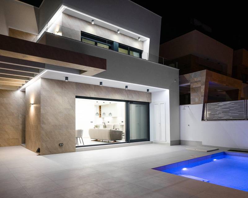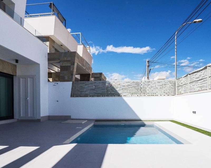 an exclusive new-build development that combines the charm of Mediterranean architecture with a modern design and premium-quality finishes. These homes are designed for maximum comfort, functionality, and style, located in one of the most desirable areas of the Costa Blanca.~~Set in a peaceful residential area with excellent connections, Villas Galán is just minutes from the Blue Flag white-sand beaches, ideal for year-round sun, and close to renowned golf courses such as Campoamor, Villamartín, and Las Ramblas.~~Each villa offers 3 spacious bedrooms and 3 full bathrooms, a fully equipped open-plan kitchen, and a bright living-dining area that opens directly onto the terrace and garden through large windows that let in plenty of natural light.~~A key highlight is the private swimming pool, included with each villa — perfect for relaxation and outdoor enjoyment. There's also a private solarium with open views, landscaped garden areas, and options to personalize finishes to your taste.~~All essential services are nearby: supermarkets, international schools, healthcare centers, restaurants, and the popular Zenia Boulevard shopping center.~~Villas Galán is more than just a home — it's an opportunity to enjoy the Mediterranean lifestyle in comfort and style, whether you're looking for a permanent residence, holiday home, or a sound investment.