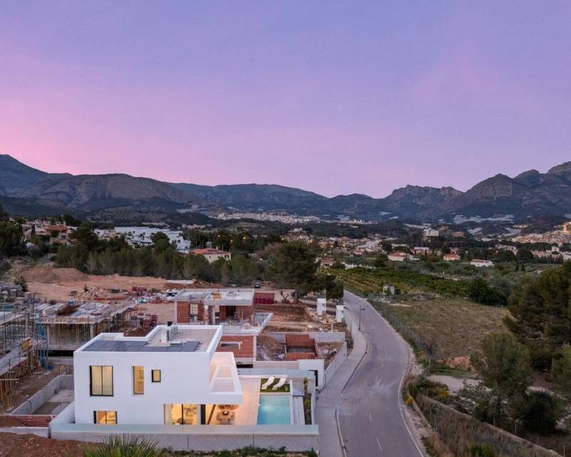 NEW BUILD VILLAS IN POLOP New Build residential of 46 villas in Polop. Modern villas build over 3 floors, has 3 bedrooms, 3 bathrooms, guest toilet, open plan modern kitchen with large living/dining room has direct access to the terrace with the pool, fitted wardrobes, basement with garage and storeroom, air conditioning, white goods. The city of Polop offers an amazing range of options for lovers of the great outdoors surrounded by nature and unparalleled peace. The municipality enjoys a Mediterranean climate with cooler temperatures and cleaner air, located less than 10 kilometres from Benidorm, Altea and their beaches. It stretches from the rivers Guadalest and Algar to the town of Villajoyosa, including the beaches of Albir and Benidorm; inland it borders Callosa and Guadalest.
