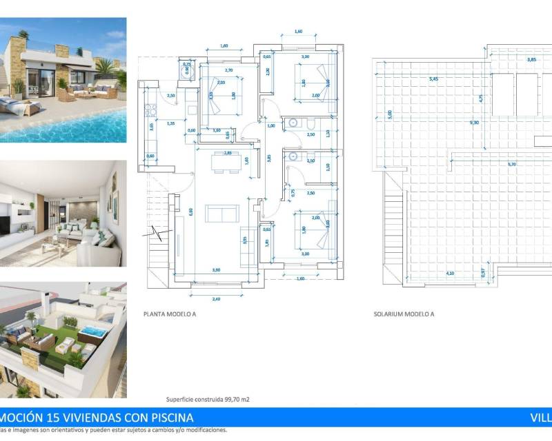 New Build Villas with Private Pool in Oasis de la Marina, Costa Blanca Modern homes in a quiet location near the beach Discover this exclusive development of 15 detached and semi-detached new-build villas, located in the Oasis de La Marina residential area in the municipality of San Fulgencio. These elegant, contemporary-designed homes are built on one floor and are just 4.5 km from the spectacular beaches of the Costa Blanca. An ideal setting for both permanent living and holiday getaways, in a quiet but well-connected area. Functional layout and design for maximum comfort Each villa has a practical and bright layout, designed for enjoying the Mediterranean lifestyle: 3 bedrooms with fitted wardrobes 2 full bathrooms with furniture and glass screens Fully equipped open-plan kitchen with extractor hood and osmosis system Spacious living-dining room with direct access to the garden Private solarium Private garden with swimming pool and solarium area Parking space on the plot Complete equipment and energy efficiency These villas are designed with high-quality materials and energy-efficient solutions: Hot and cold air conditioning system Installation of photovoltaic solar panels Interior and exterior LED lighting Electric aluminium blinds Private pool in each property Private parking within the plot Natural surroundings and nearby amenities Oasis de La Marina is a quiet residential area surrounded by nature, between the towns of San Fulgencio, La Marina and Guardamar del Segura. The location offers proximity to all the necessary amenities for everyday life, as well as leisure and sports options. Nearby points of interest: Nearest beach: 4.5 km La Marquesa golf course: 6 km Habaneras shopping centre (Torrevieja): 15 km Alicante airport: 29 km Murcia airport: 66 km Quick access to the N-332 national road Enjoy the Mediterranean lifestyle in a privileged setting These villas represent an excellent opportunity for those seeking tranquillity, privacy and proximity to the sea. Contact us today for more information or to arrange a viewing of these exclusive new-build properties in San Fulgencio.