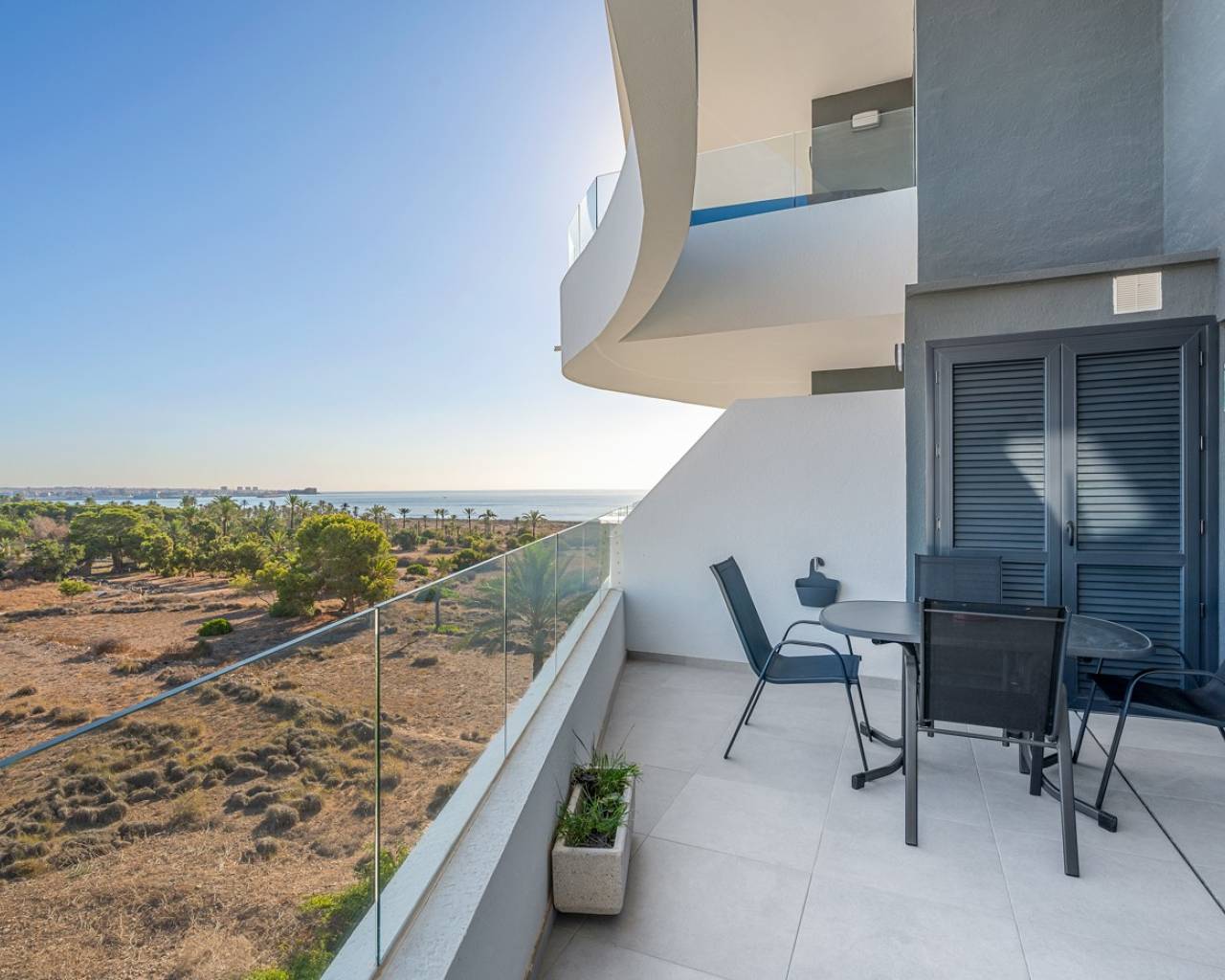 This stunning apartment, built in 2024, offers breathtaking views of the sea and the harbour of Torrevieja. Just 300 metres from the coastline and within walking distance of shops, restaurants, and all essential amenities. The property features two bedrooms and two bathrooms, one of which is en suite. The modern open-plan kitchen is fully equipped and flows into a bright and airy living area. Exclusive extras include a communal rooftop terrace with swimming pool, outdoor kitchen, and BBQ – perfect for stylish Mediterranean living. An underground parking space and a private storage room are also included for added comfort and security.