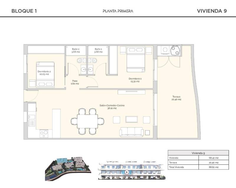 NEW BUILD RESIDENTIAL COMPLEX IN FINESTRAT New Build residential complex in Balcon de Finestrat. This complex of modern apartments with 2 bedrooms, 2 bathrooms, open plan kitchen with the living area. Some of the apartments will have sea views. Ground floor apartment with a private gardens, middle floor apartments with the terraces and top floor apartments has a terraces and private solariums. Each property has private underground parking space. The properties have access to the communal area with 3 swimming pools, parking, paddle, playground, calisthenics. It is a great opportunity and privilege to be able to live with this environment of golf and beach, close to all amenities of all services considered one of the best places to invest. Finestrat located in the Marina Baixa region of the Costa Blanca. Benidorm is just a five-minute drive from the properties and offers all the services you would need including shops, bars, restaurants, supermarkets, banks, pharmacies and several private international schools. Close to the beaches of Levante, Poniente and Cala de Finestrat, with more than 6km in length that are among the best in Europe awarded by the European Union with Blue Flags. All leisure services such as the theme parks of Aqua Natura, Terra Mítica, Terra Natura, Aqualandia and Mundomar, Sierra Cortina and Villaitana Golf courses, hiking and climbing in Puig Campana an incomparable natural setting or enjoy of nautical sports. Distance to the sea 4 km, to the airport 26 km and to the golf 1km.