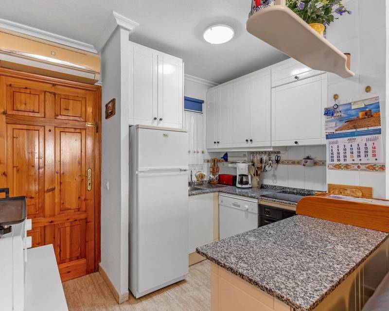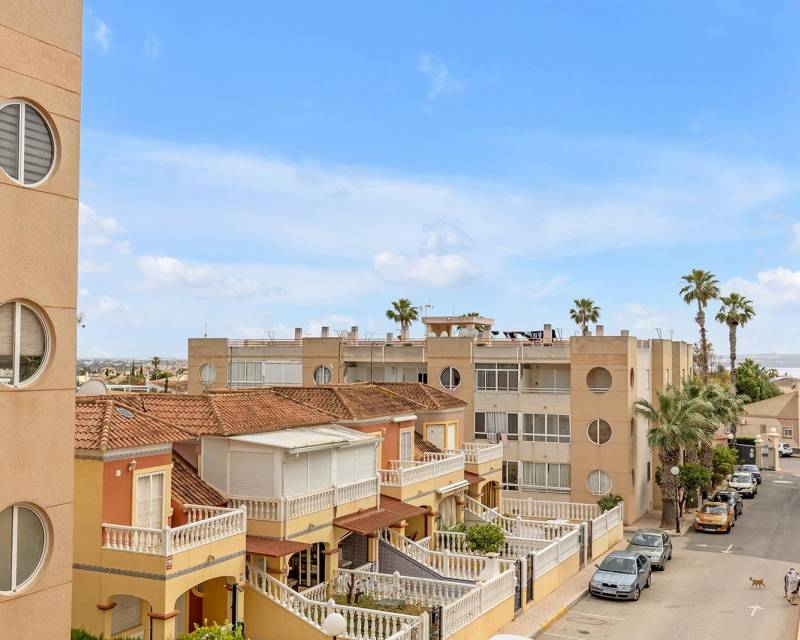 For sale: a charming 2-bedroom, 1-bathroom apartment with an open-plan kitchen, filled with natural light and a smart layout. It features a large terrace of approximately 15 m2 — perfect for outdoor dining, sunbathing, or relaxing with open views.~~Located on Avenida Robleda in the quiet and sought-after San Luis neighborhood, a well-established residential area with all amenities nearby: supermarkets, restaurants, health center, public transport, and just a 10-minute drive from the beautiful beaches of La Mata and Los Locos.~~This property is within a gated community with a communal pool, 24-hour security, and direct access to the La Mata Natural Park — ideal for walking, cycling, or simply enjoying nature.~~Perfect as a permanent residence, holiday home, or investment for vacation rentals thanks to its great location and services.