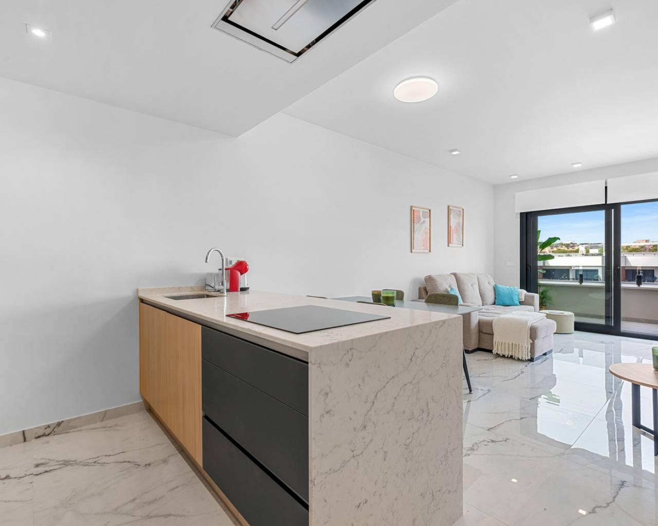 In the sought-after area of Los Altos you’ll find this stylish and furnished penthouse apartment, located in the brand-new Amanecer X residence. With its private roof terrace and sunny balcony, it’s the perfect place to enjoy the Mediterranean lifestyle. The property offers 2 bedrooms and 2 bathrooms, spread over nearly 71 m² of well-designed living space. A bright open-plan living area seamlessly connects the modern kitchen with the 21 m² balcony, ideal for morning coffee or dining outdoors. On top of that, the large 80 m² solarium provides plenty of space to sunbathe, entertain guests, or simply unwind in privacy. With two pergolas and side panels, you’ll have the perfect mix of sun and shade in every season. The apartment comes furnished, including tasteful furniture and practical extras, so you can move in straight away. => Please note: the outdoor kitchen and terrace furniture shown are not included in the sales price. These can be purchased separately as optional extras. As a resident of Amanecer X, you’ll also benefit from top-class communal facilities such as a swimming pool, gym, and sauna – all designed to make your stay relaxing and enjoyable. With its prime location close to beaches, shops, and restaurants, this property combines convenience, comfort, and a modern lifestyle on the Costa Blanca.