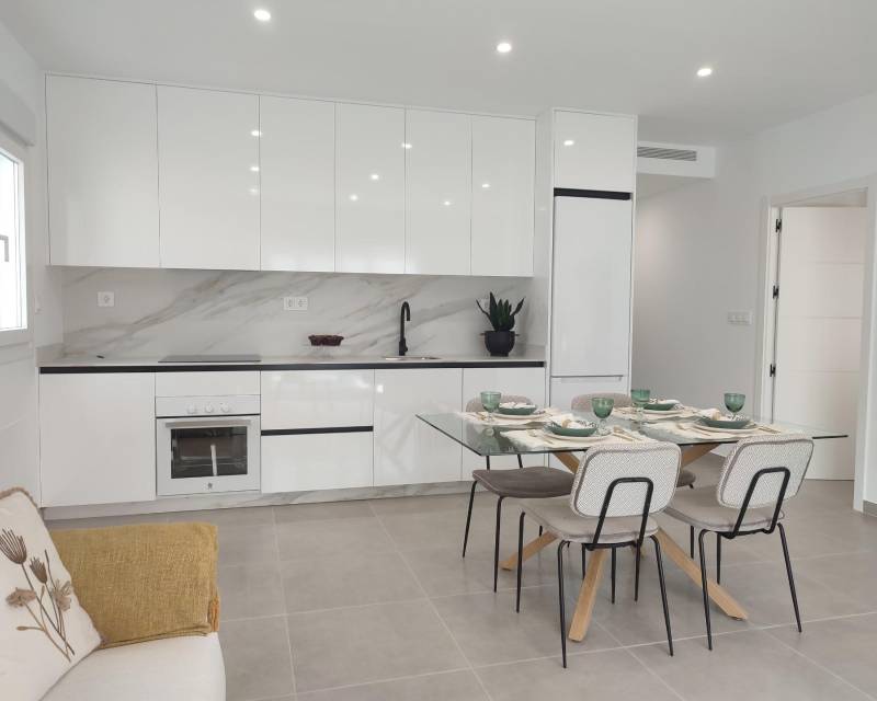 NEW BUILD ONE LEVEL VILLAS IN BALSICAS, MURCIA New Build residential has 6 one level detached villas, with terraced area, private pool, parking on the plot and solarium with Summer kitchen, to enjoy all hours of sunshine every day of the year. Each property has 3 bedrooms and 2 fitted bathrooms. The property has been designed with a contemporary style and an open planned concept, with a fully-fitted kitchen and lounge-dining room. The property will meet the highest standards and will be equipped with: Kitchen completely furnished and equipped with oven, integrated fridge and dishwasher, hob and extractor fan. Kitchen island work zone. Lighting: inside the property (dining room, kitchen, corridors and bathrooms), and as well as in outdoor areas. Lined wardrobes with drawers. Fully fitted bathrooms with toilet, vanity unit, mirror and shower with screen panels. Pre-installation for ducted air conditioning. Solarium with Summer kitchen, with pre-installation for appliances and sliding doors. Private pool with external shower. Parking space on the plot. Balsicas is a perfect place for golf lovers and also for anyone who enjoys green spaces as places of leisure, beauty and tranquillity. Its strategic location makes it possible for the family that decides to live in this complex to have at their fingertips everything that anyone could wish for: a climate where the sun shines almost all year round, nearby beaches, the Mar Menor and its natural muds. with proven healing powers. Complex located 20 minutes from Murcia - Corvera airport and 1 hour from Alicante airport.