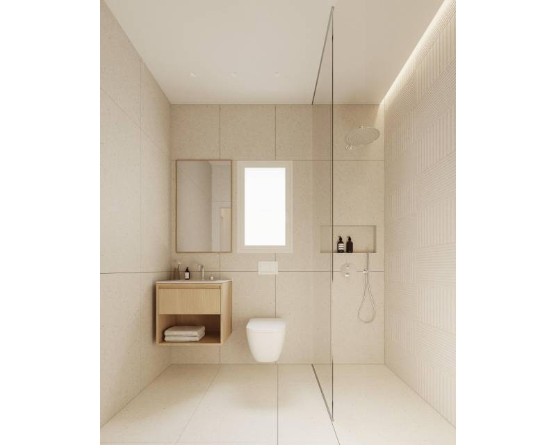 Modern New Build Apartments in the Heart of Torrevieja, Just 600 m from the Sea Exclusive Boutique Development in Central Torrevieja Discover an exclusive residential project of only 7 modern new build apartments, ideally located in the vibrant center of Torrevieja, Alicante. Just 600 m from the seafront, these stylish homes perfectly combine the advantages of coastal living with the convenience of an urban lifestyle, offering easy access to shops, restaurants, and leisure options. Contemporary Design and Smart Layouts Choose between 1 or 2 bedroom apartments, each with 2 bathrooms (one en-suite). The open layouts are designed to maximize space and natural light, ensuring both comfort and functionality. Premium finishes such as security entrance doors, fitted wardrobes with textile finishes, aluminum carpentry with thermal break, and motorized shutters in the living room guarantee durability and style. Kitchens and bathrooms feature high-quality fixtures, with shower screens and built-in mirrors included. Pre-installed ducted air conditioning for year-round comfort. Exclusive Amenities for Residents This modern building has been designed for convenience and relaxation. Residents can enjoy: Rooftop solarium with community pool Bicycle and e-scooter parking area on the ground floor Elevator with access to all levels including the rooftop Dynamic Lifestyle on the Costa Blanca Torrevieja is a lively coastal city known for its sunny climate with over 300 days of sunshine per year, cultural events, and Mediterranean lifestyle. Its beaches, marina, promenades, and water sports facilities make it an ideal place to live permanently or enjoy a holiday retreat. All essential services such as supermarkets, cafés, schools, and healthcare centers are within walking distance. Excellent Location and Connectivity This privileged location ensures quick access to key destinations: Promenade: 600 m Playa del Acequión: 1 km Torrevieja Marina: 600 m Zenia Boulevard Shopping Center: 8 km Golf courses: 7–10 km Alicante International Airport: 45 km Your Mediterranean Home Awaits Whether you are looking for a holiday home, a smart investment, or a permanent residence, these modern new build apartments in Torrevieja offer an outstanding opportunity in one of the most desirable areas of the Costa Blanca. Contact us today to arrange a viewing and secure your new home in this exclusive city center development.